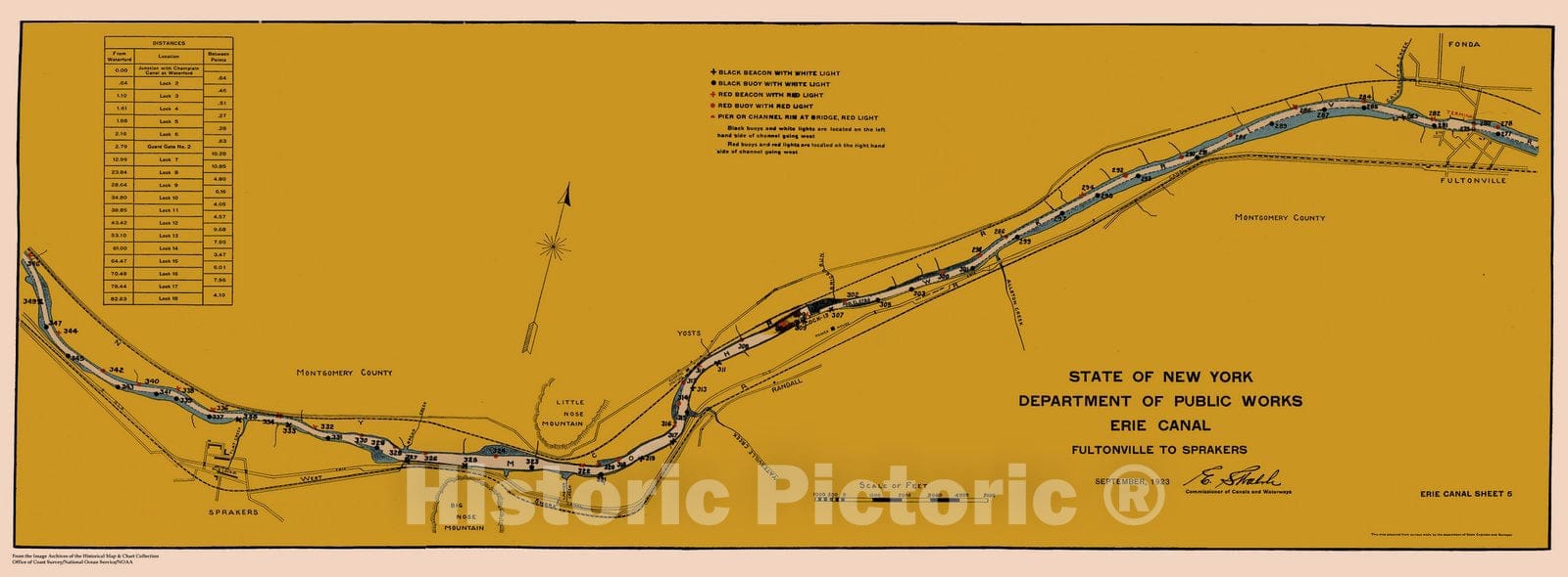 • .Historic Nautical Map - State Of New York Department Of Public Works Erie Canal, NY, 1923 NOAA Chart - Vintage Wall Art, v5