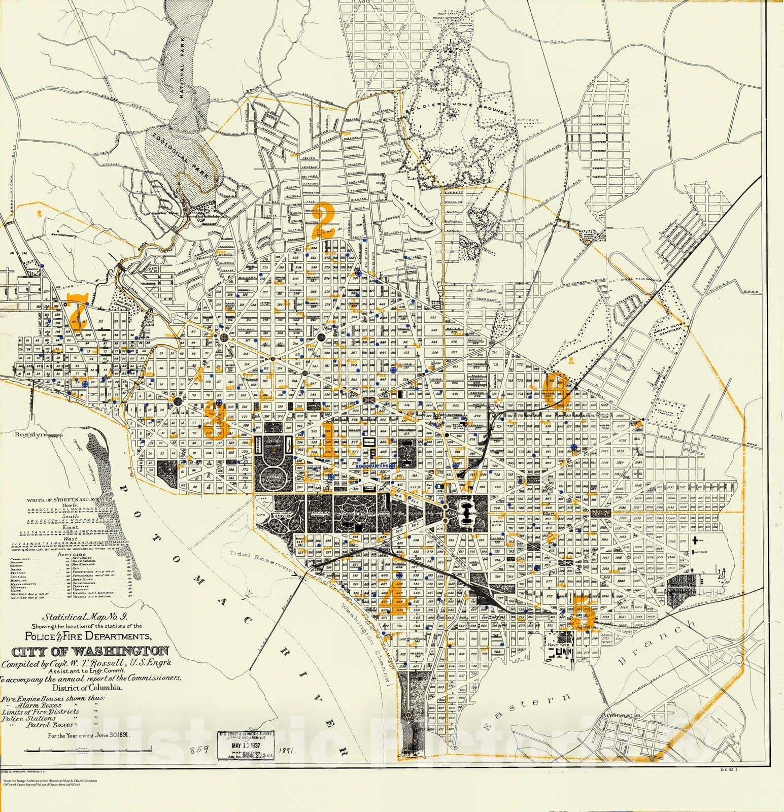Historic Nautical Map - Statistical Map No.9 Showing The Location Of The Stations Of The Police And Fire Departments, City Of Washington, DC, 1891 NOAA City Plan - Decor Poster Wall Art Reproduction - 0