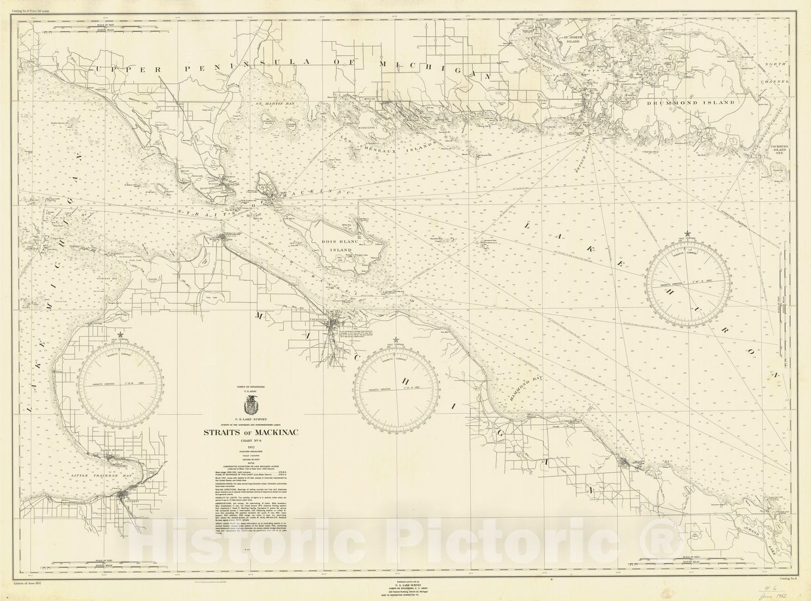 Historic Nautical Map - Straits Of Mackinac, 1952 NOAA Chart - Vintage Wall Art