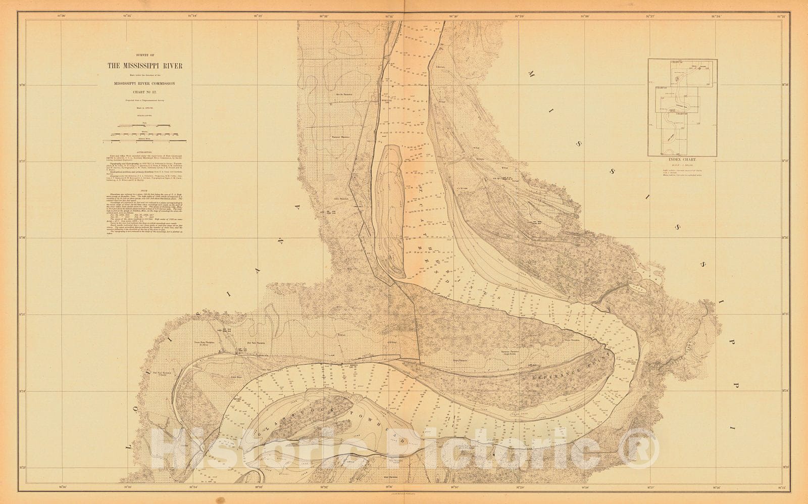 Historic Nautical Map - Survey Of The Mississippi River, 1880 NOAA Chart - Vintage Wall Art, v6