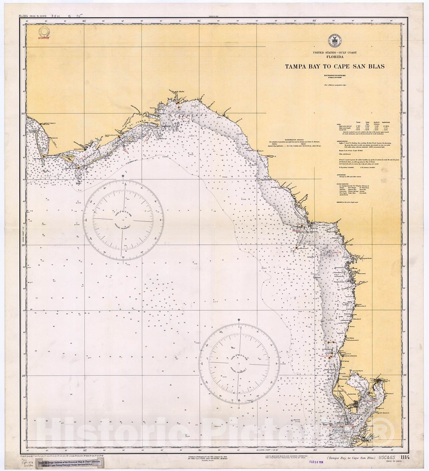 Historic Nautical Map - Tampa Bay To Cape San Blas, 1933 NOAA Chart - Florida (FL) - Vintage Wall Art