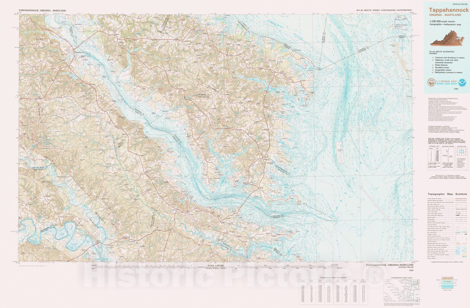 Historic Nautical Map - Tappahannock, MD, VA, 1984 NOAA Topographic Bathymetric Historic Nautical Map - Vintage Wall Art