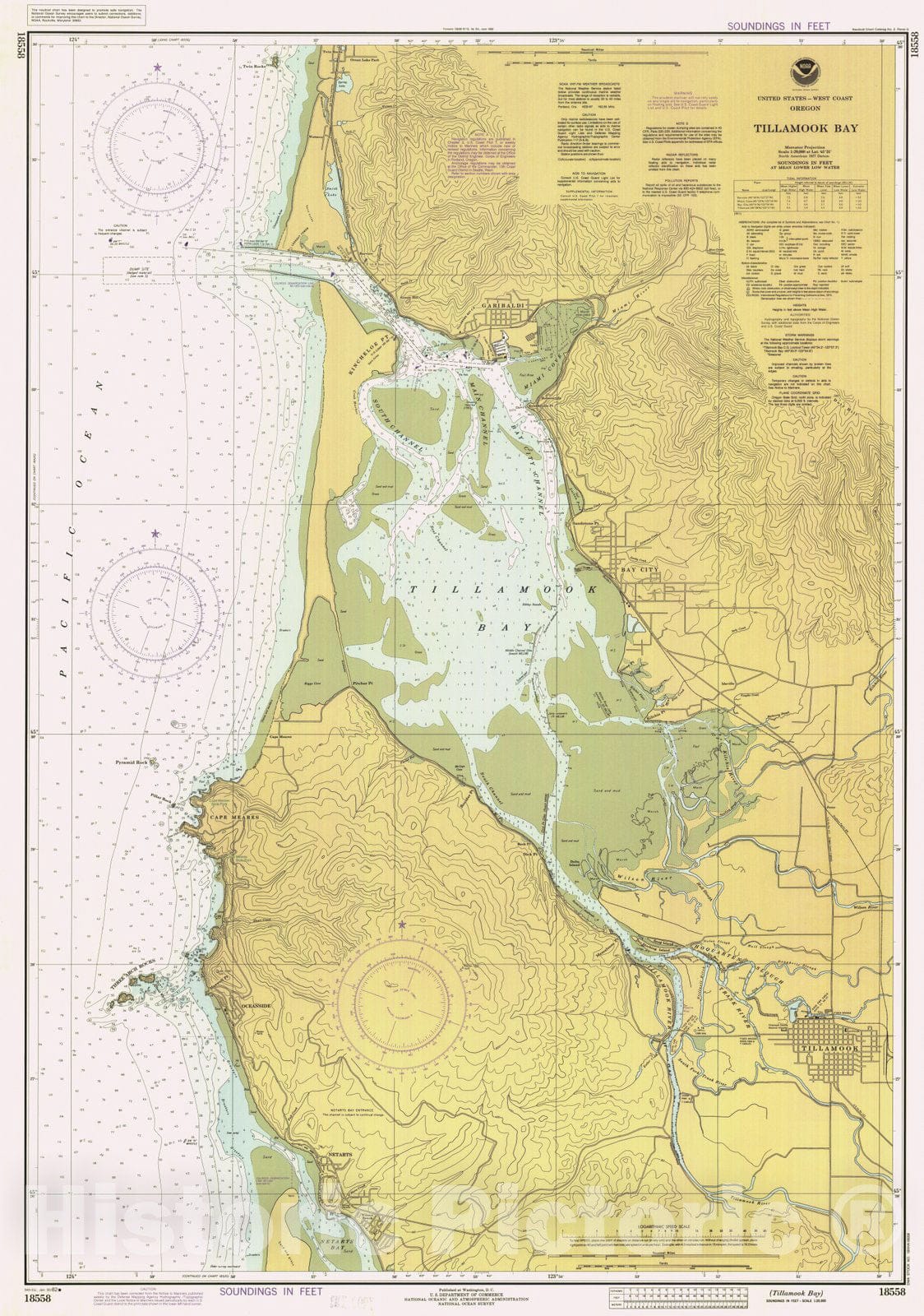 Historic Nautical Map - Tillamook Bay, OR, 1982 NOAA Chart - Vintage Wall Art