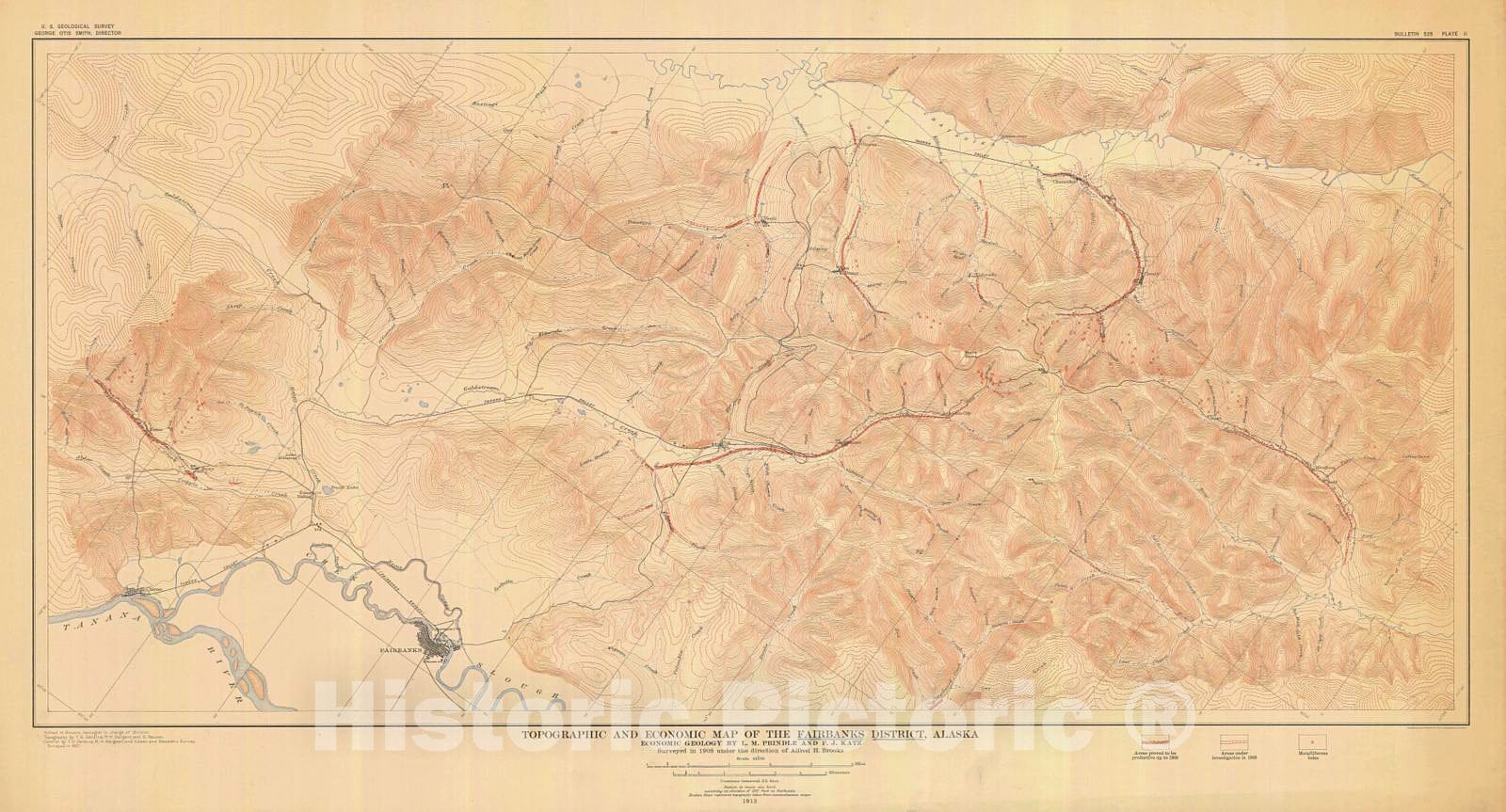 Historic Nautical Map - Topographic And Economic Map Of The Fairbanks District, 1913 NOAA Topographic Historic Nautical Map - Alaska (AK) - Vintage Wall Art