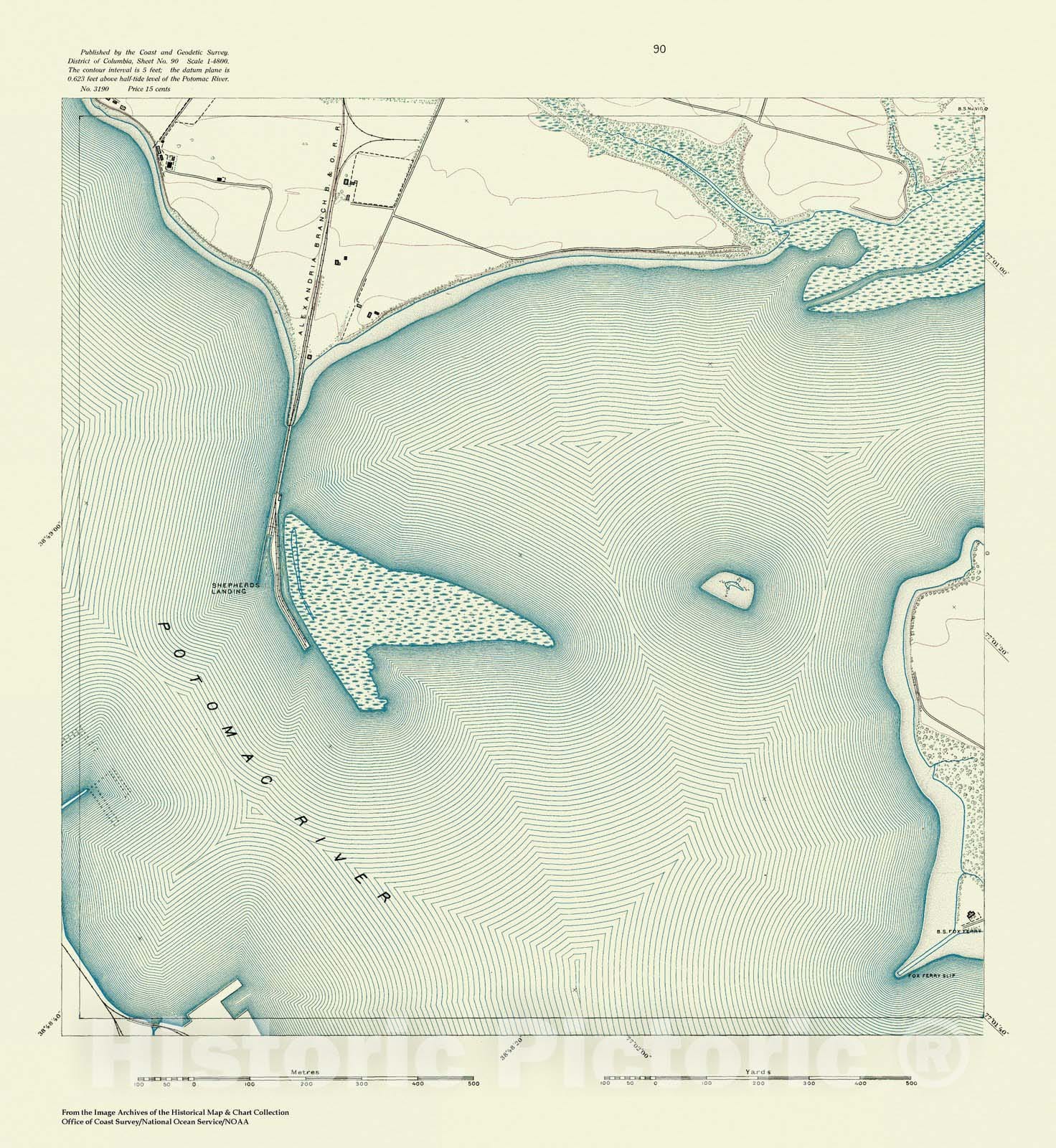 Historic Nautical Map - Topographic Map Of Washington And Vicinity, Sheet 90, DC, 1888 NOAA Topographic - Vintage Wall Art