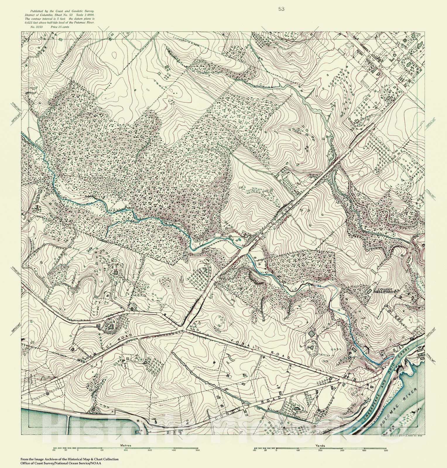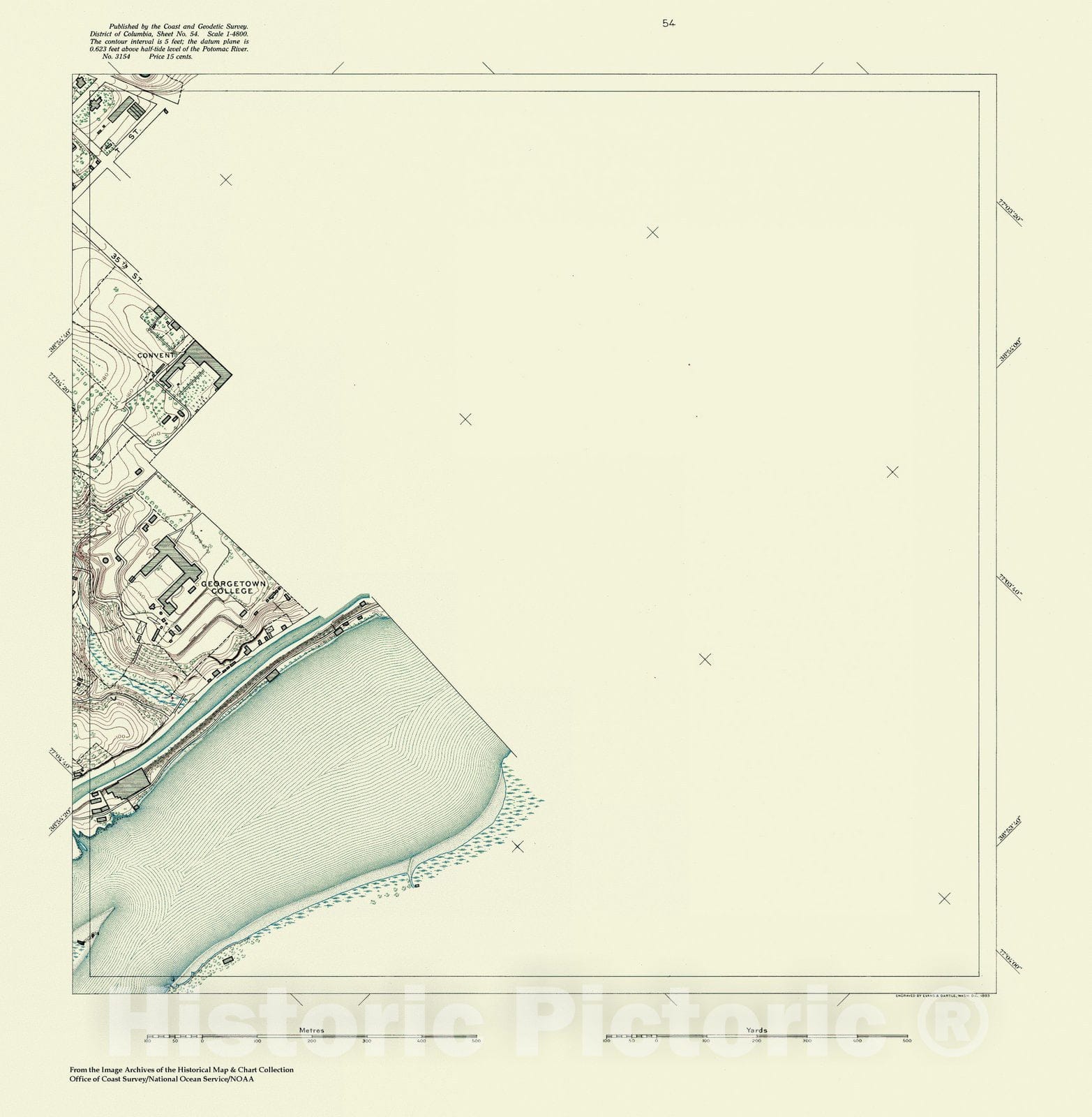Historic Nautical Map - Topographic Map Of Washington And Vicinity, Sheet 54, DC, 1888 NOAA Topographic - Vintage Wall Art