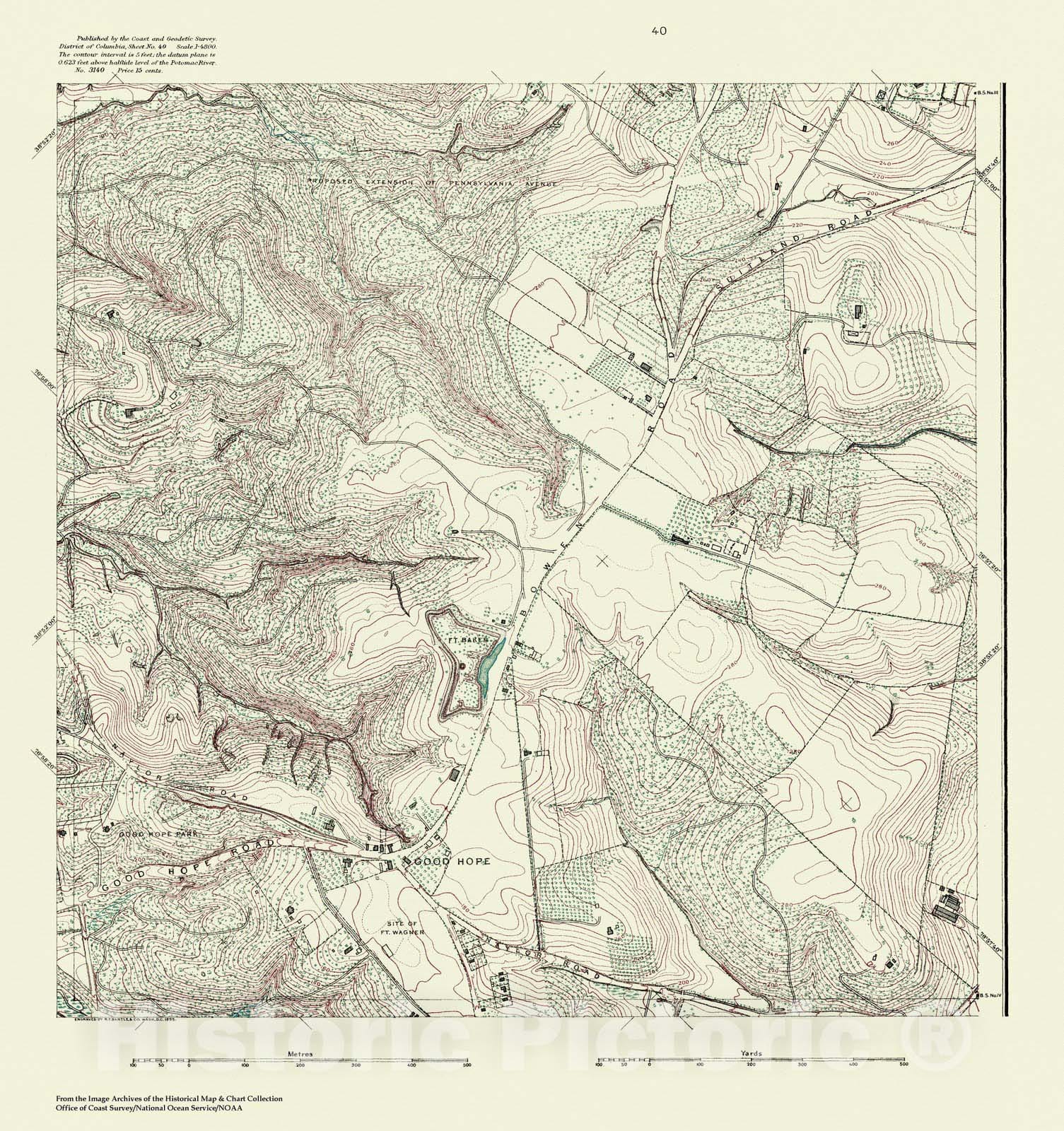 Historic Nautical Map - Topographic Map Of Washington And Vicinity, Sheet 40, DC, 1888 NOAA Topographic - Vintage Wall Art