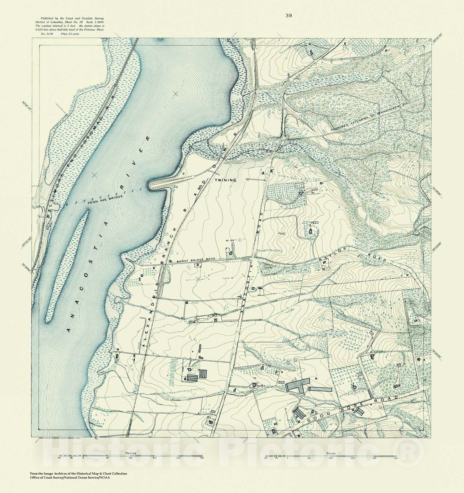 Historic Nautical Map - Topographic Map Of Washington And Vicinity, Sheet 39, DC, 1888 NOAA Topographic - Vintage Wall Art