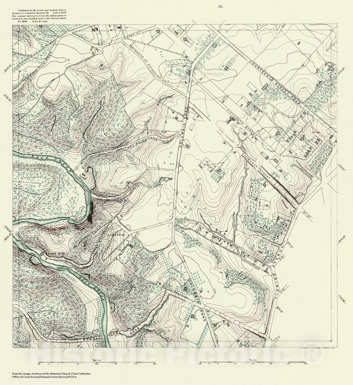 Historic Nautical Map - Topographic Map Of Washington And Vicinity, Sheet 34, DC, 1888 NOAA Topographic - Vintage Wall Art