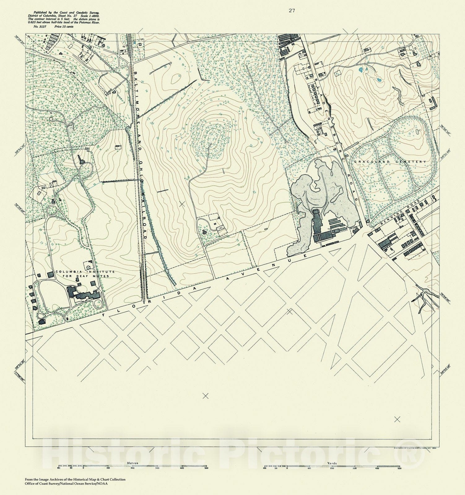 Historic Nautical Map - Topographic Map Of Washington And Vicinity, Sheet 27, DC, 1888 NOAA Topographic - Vintage Wall Art