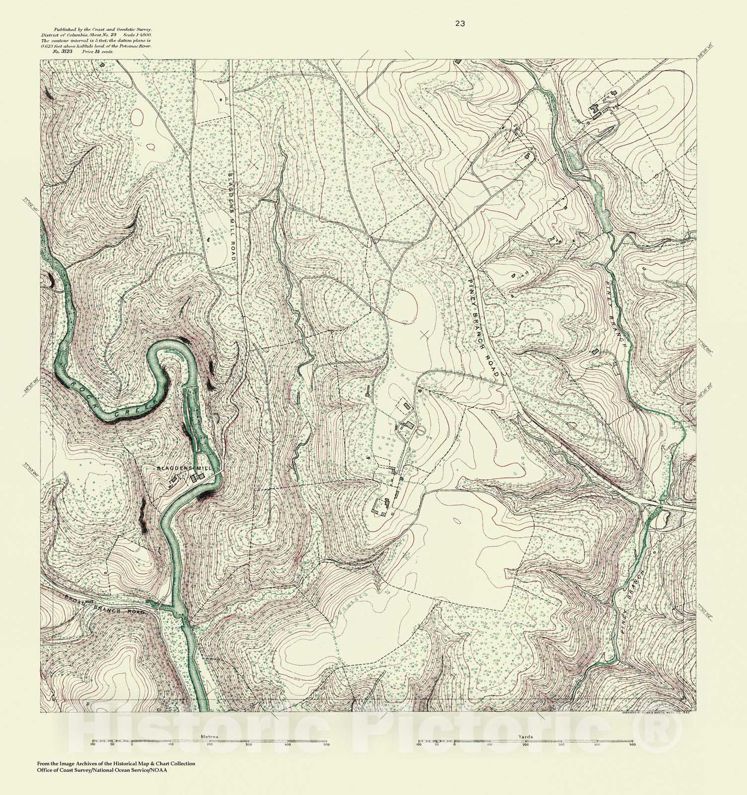 Historic Nautical Map - Topographic Map Of Washington And Vicinity, Sheet 23, DC, 1888 NOAA Topographic - Vintage Wall Art