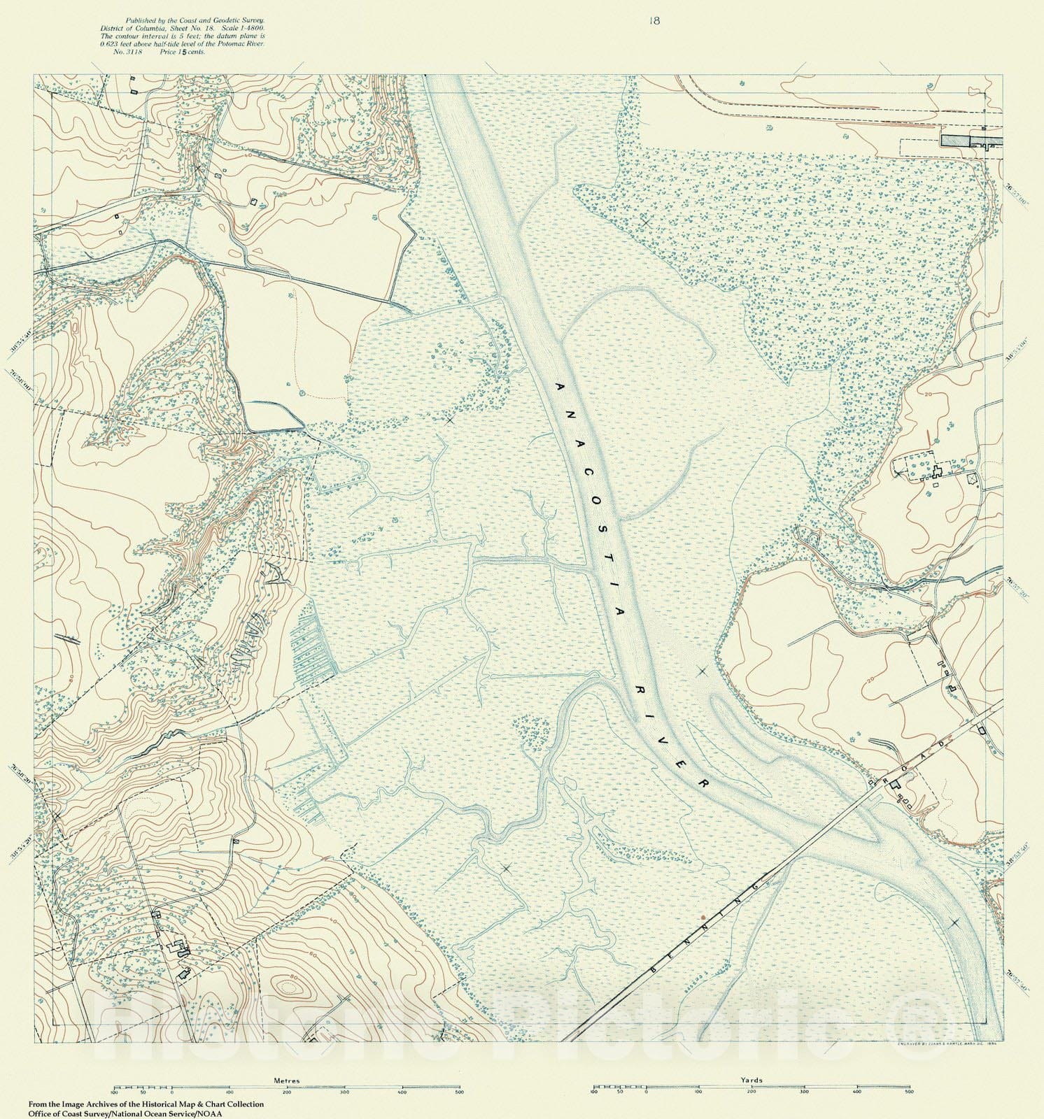 • .Historic Nautical Map - Topographic Map Of Washington And Vicinity, Sheet 18, DC, 1888 NOAA Topographic - Vintage Wall Art
