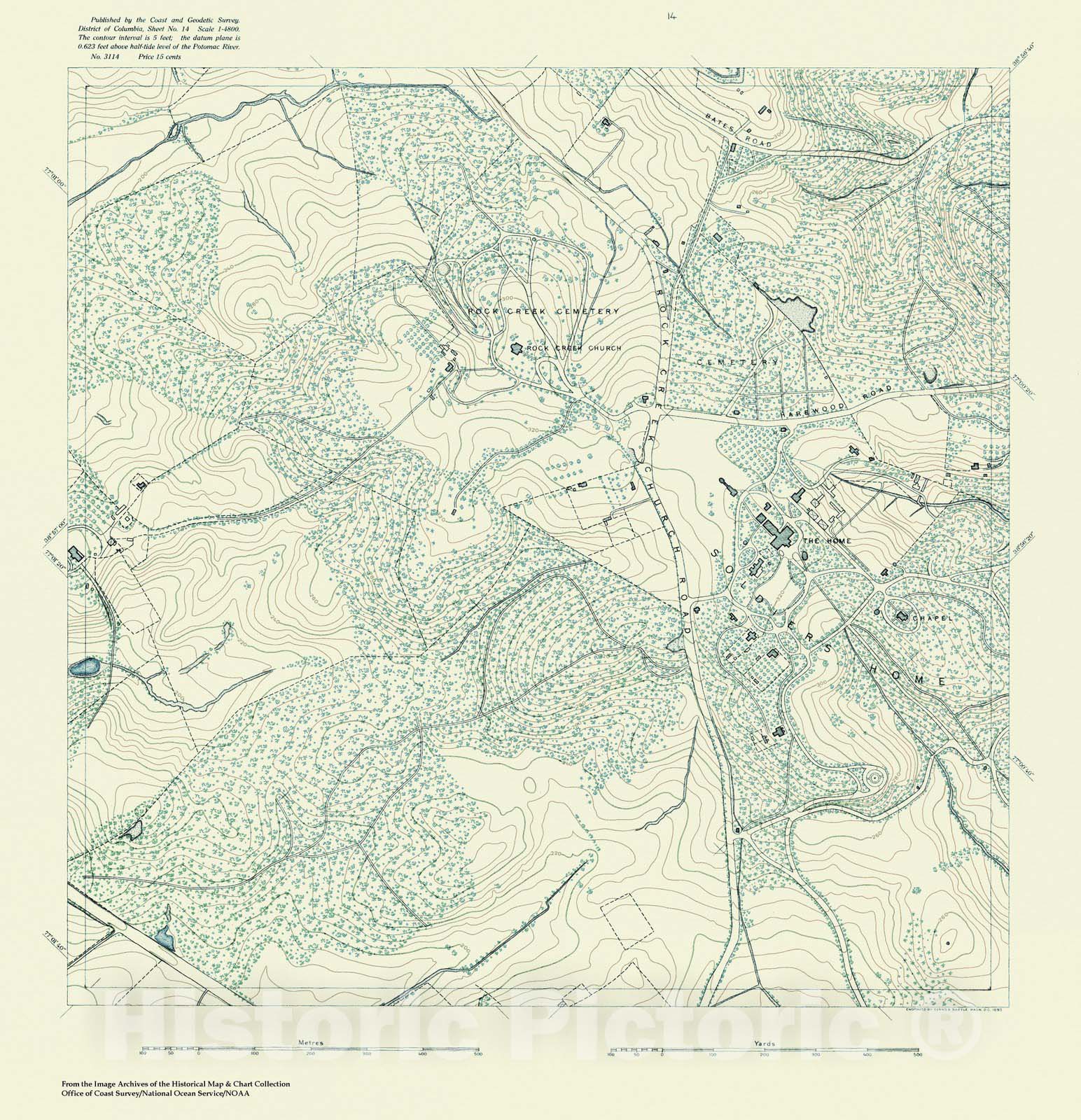 Historic Nautical Map - Topographic Map Of Washington And Vicinity, Sheet 14, DC, 1888 NOAA Topographic - Vintage Wall Art