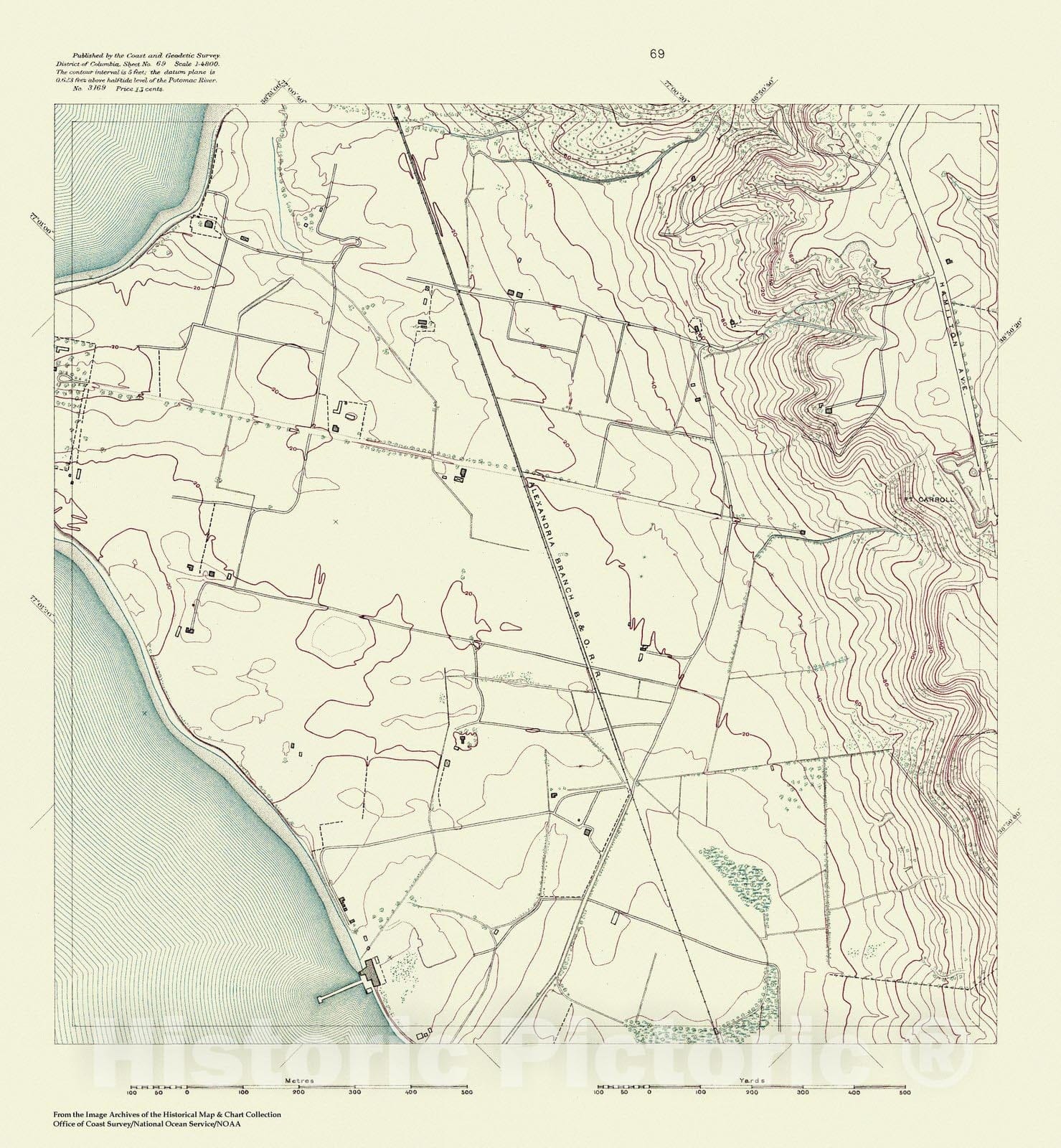 Historic Nautical Map - Topographic Map Of Washington And Vicinity, Sheet 69, DC, 1888 NOAA Topographic - Vintage Wall Art