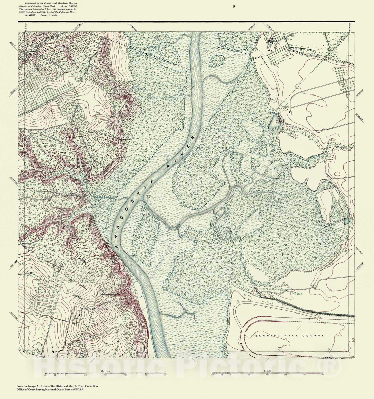 Historic Nautical Map - Topographic Map Of Washington And Vicinity, Sheet 8, DC, 1888 NOAA Topographic - Vintage Wall Art