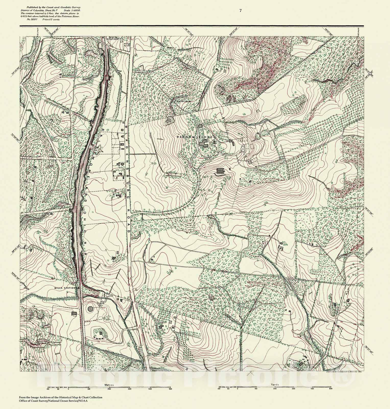 • .Historic Nautical Map - Topographic Map Of Washington And Vicinity, Sheet 7, DC, 1888 NOAA Topographic - Vintage Wall Art