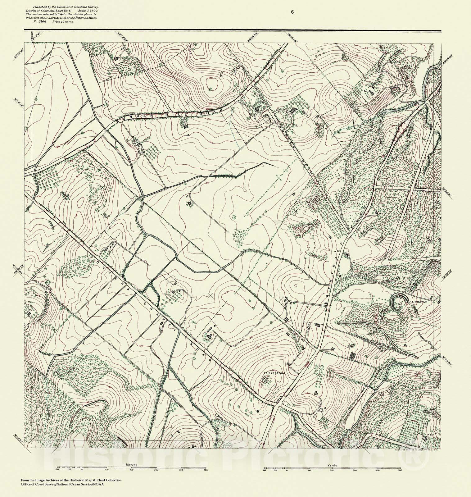 Historic Nautical Map - Topographic Map Of Washington And Vicinity, Sheet 6, DC, 1888 NOAA Topographic - Vintage Wall Art