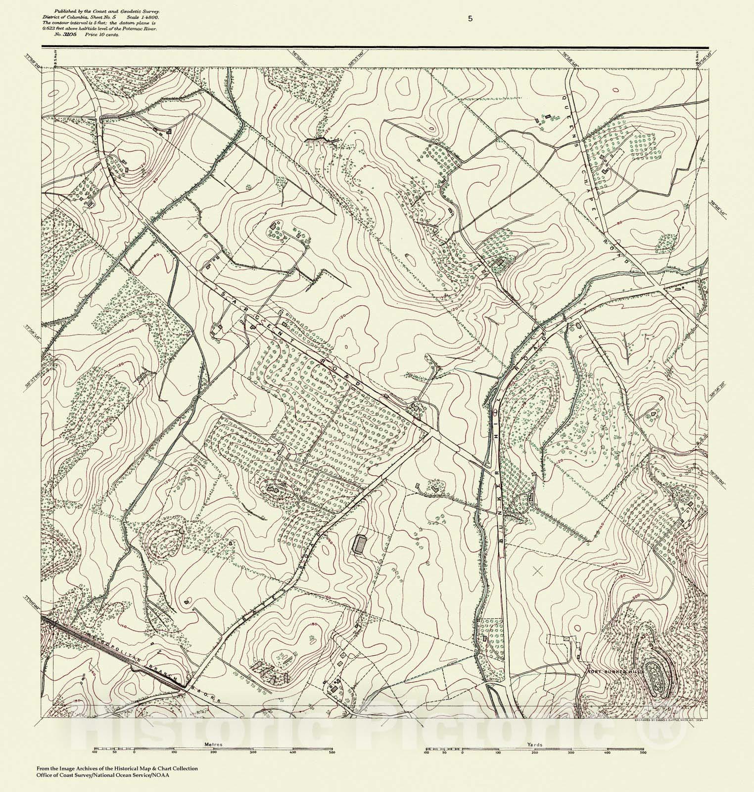 Historic Nautical Map - Topographic Map Of Washington And Vicinity, Sheet 5, DC, 1888 NOAA Topographic - Vintage Wall Art