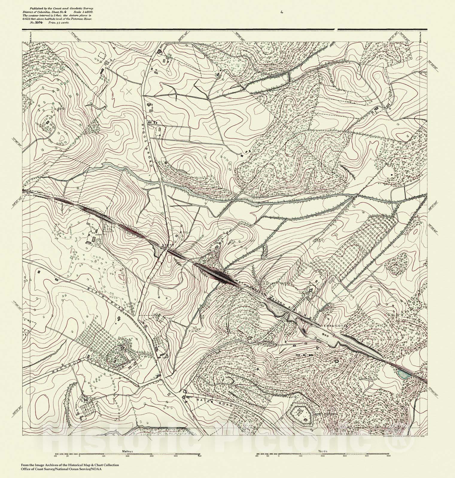 Historic Nautical Map - Topographic Map Of Washington And Vicinity, Sheet 4, DC, 1888 NOAA Topographic - Vintage Wall Art