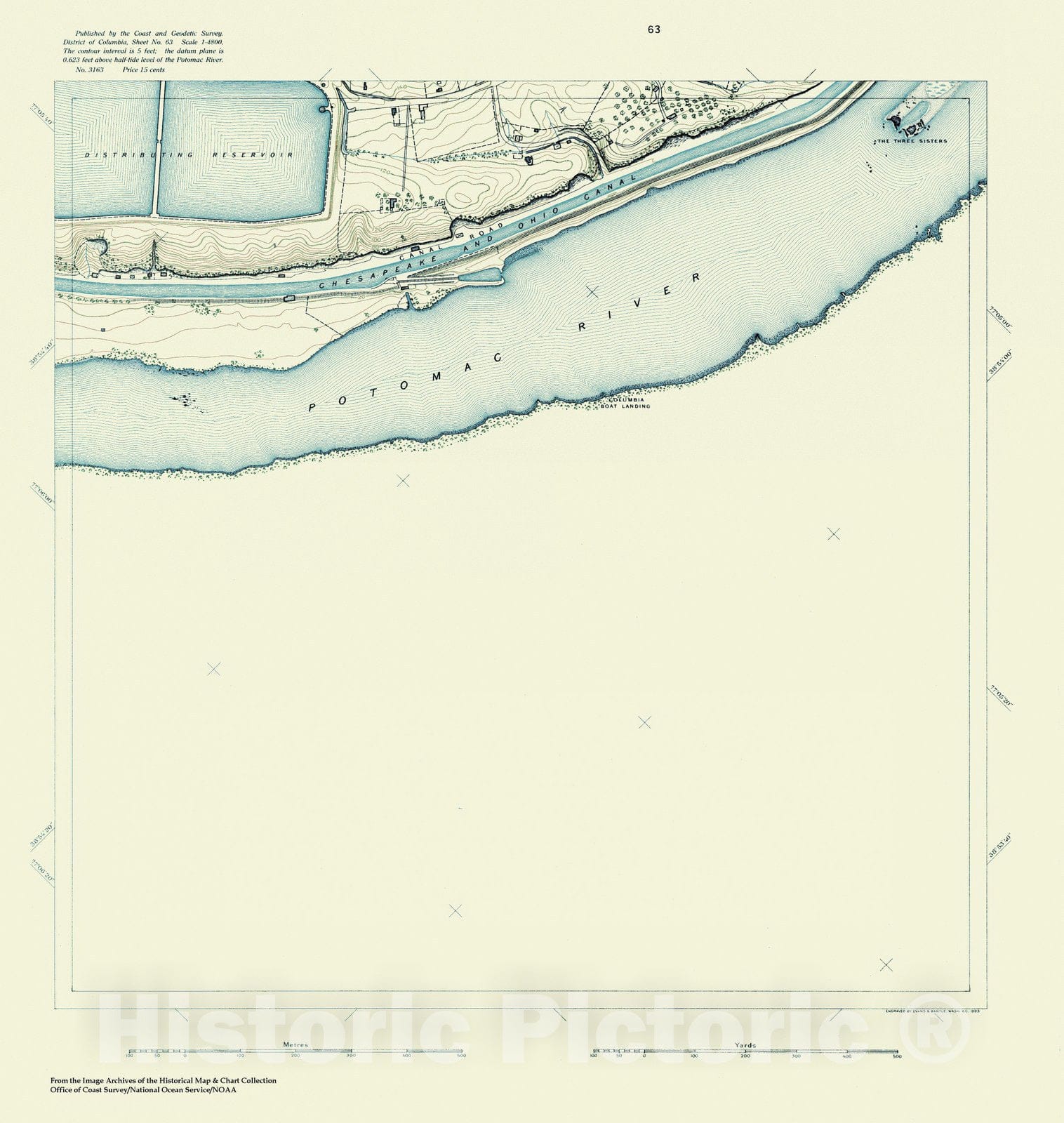 Historic Nautical Map - Topographic Map Of Washington And Vicinity, Sheet 63, DC, 1888 NOAA Topographic - Vintage Wall Art