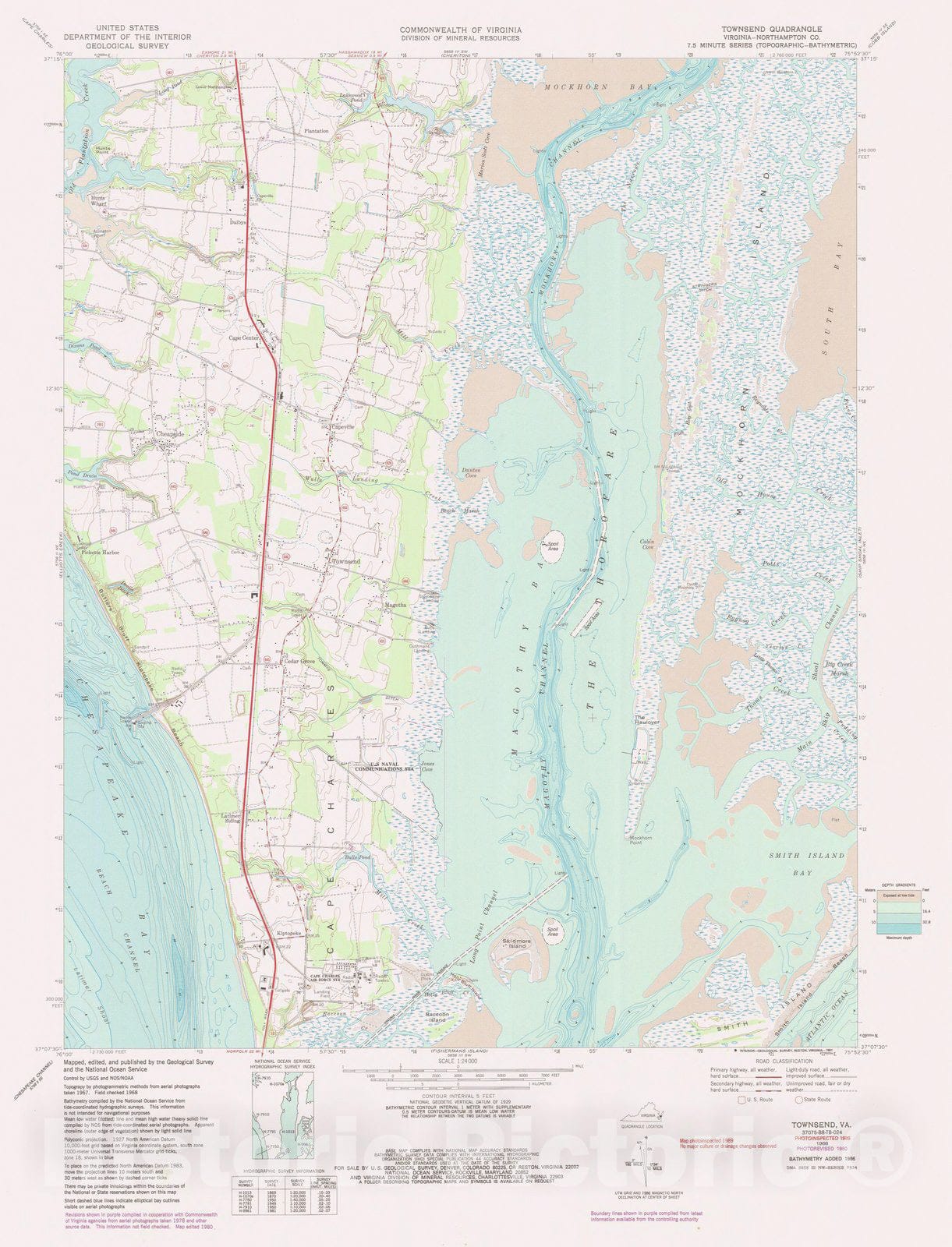 Historic Nautical Map - Townsend Va, VA, 1980 NOAA Topographic Bathymetric Historic Nautical Map - Vintage Wall Art