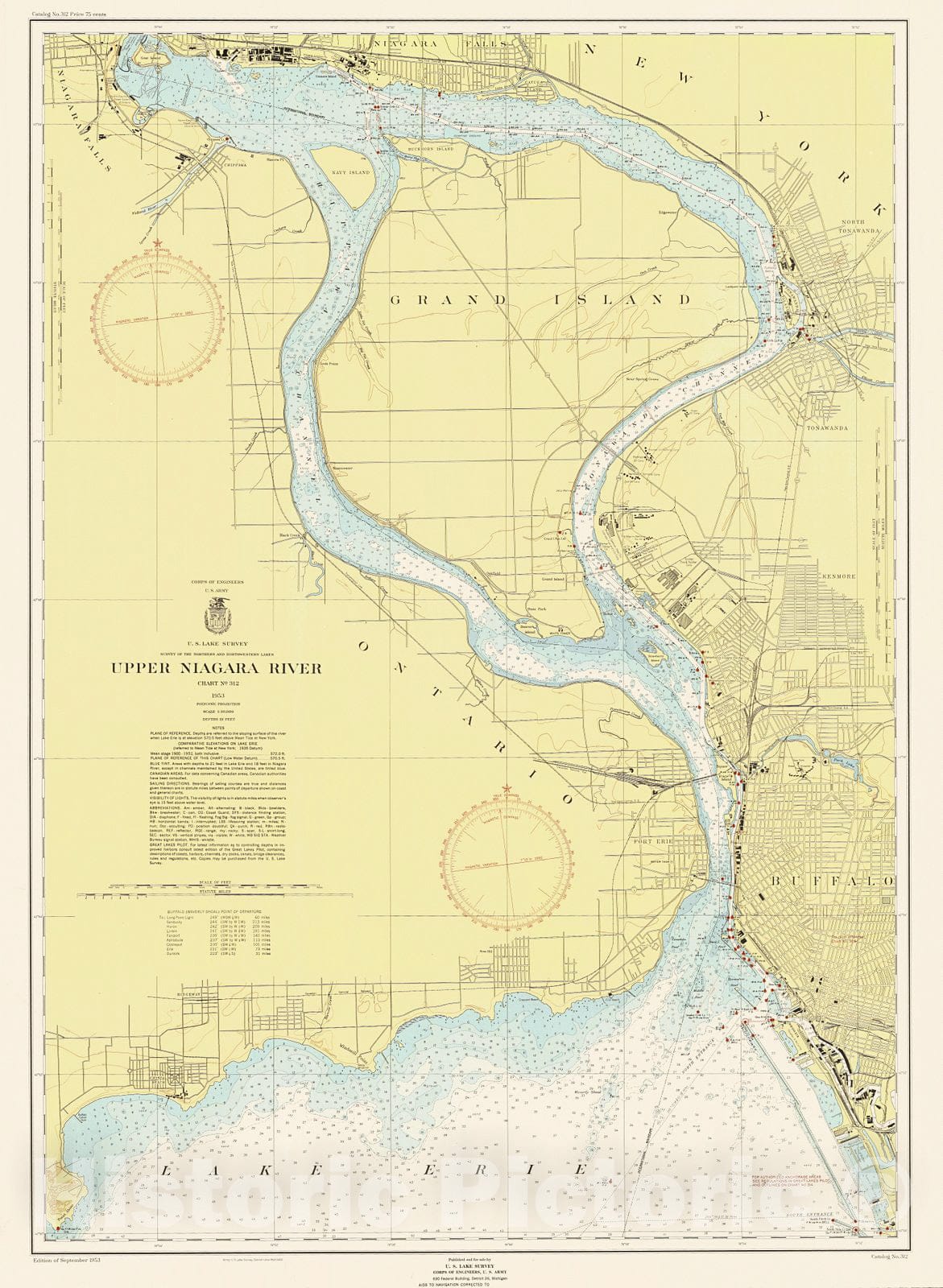 Historic Nautical Map - Upper Niagara River, 1953 NOAA Chart - Vintage Wall Art