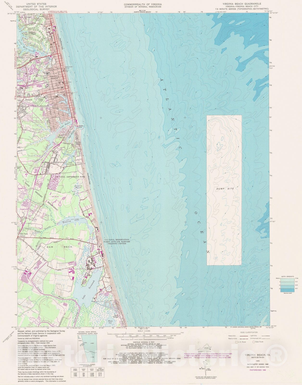 Historic Nautical Map - Virginia Beach Va, VA, 1986 NOAA Topographic Bathymetric Historic Nautical Map - Vintage Wall Art