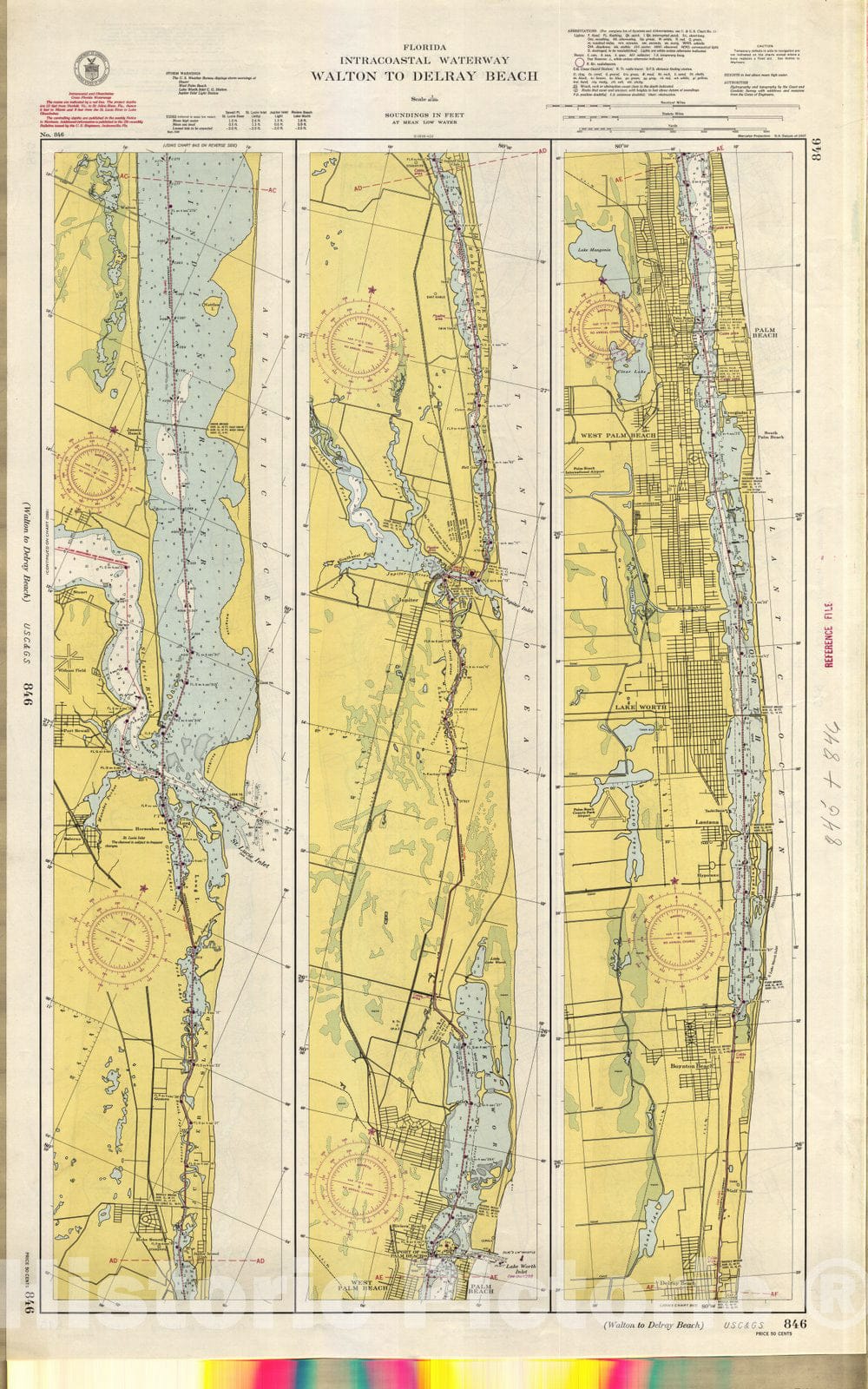 • .Historic Nautical Map - Walton To Deray Beach, 1936 NOAA Chart - Vintage Wall Art