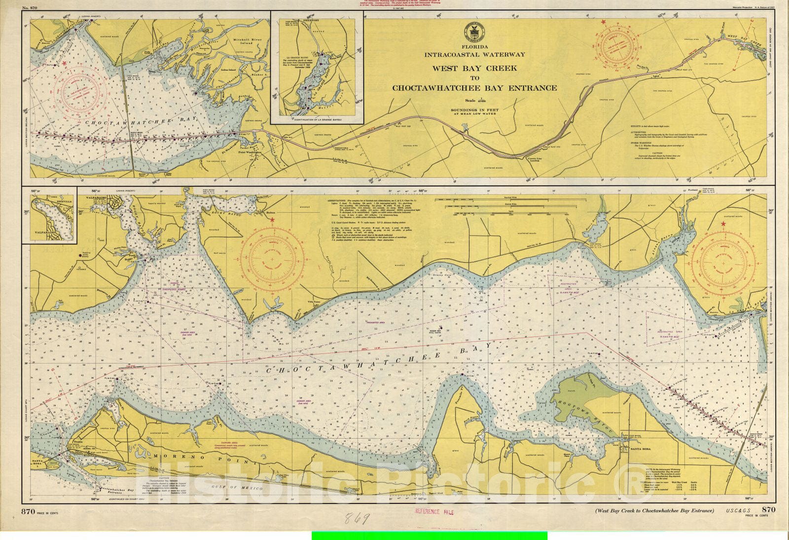 • .Historic Nautical Map - West Bay Creek To Choctawhatchee Bay Entrance, 1947 NOAA Chart - Vintage Wall Art
