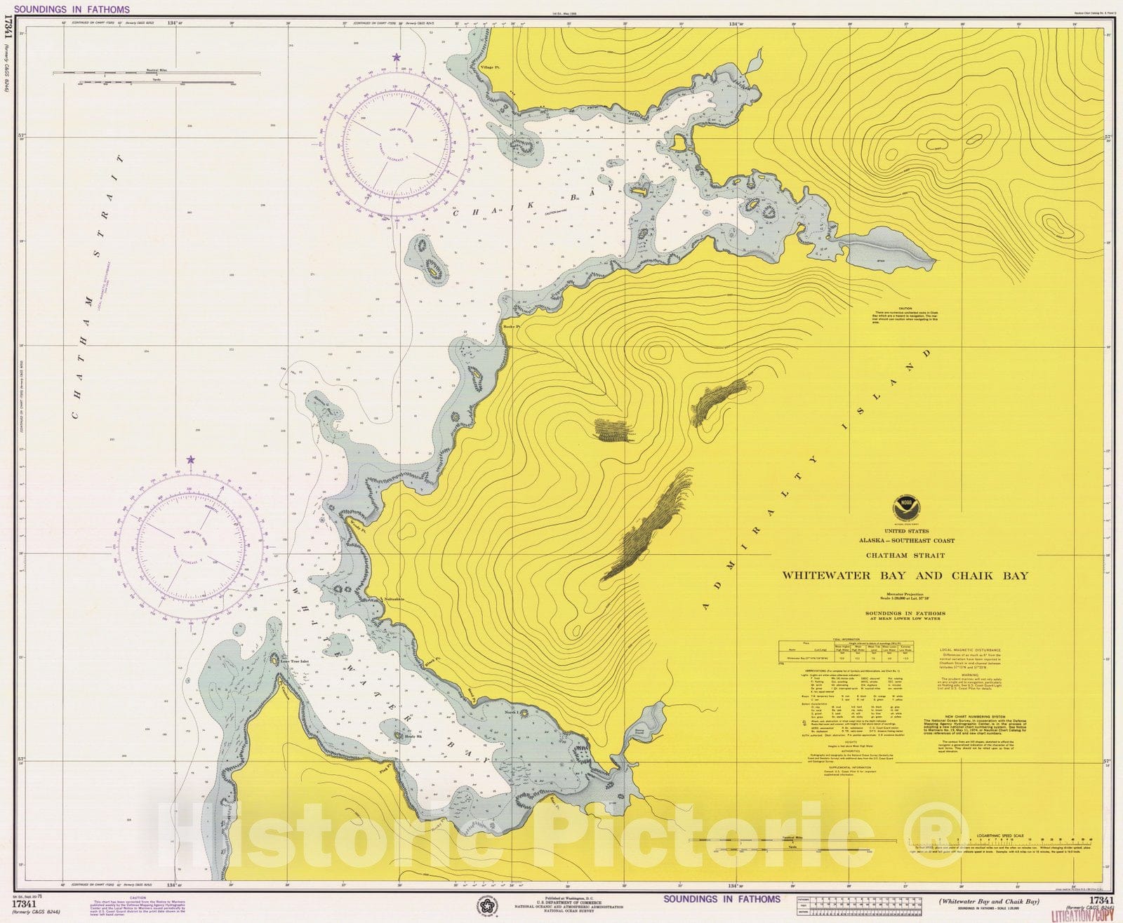 Historic Nautical Map - Whitewater Bay And Chaik Bay, AK, 1975 NOAA Chart - Vintage Wall Art
