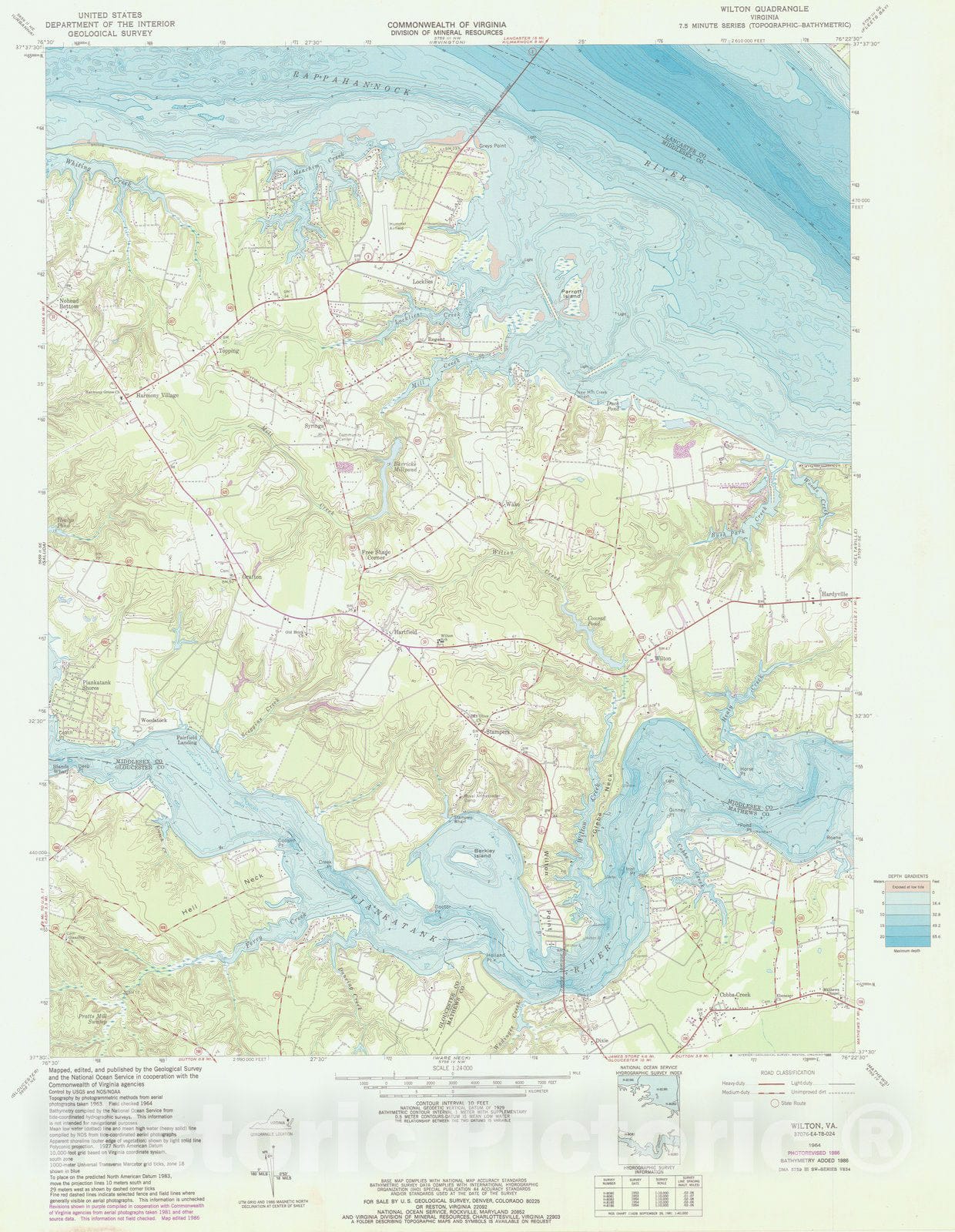 Historic Nautical Map - Wilton Va, VA, 1986 NOAA Topographic Bathymetric Historic Nautical Map - Vintage Wall Art