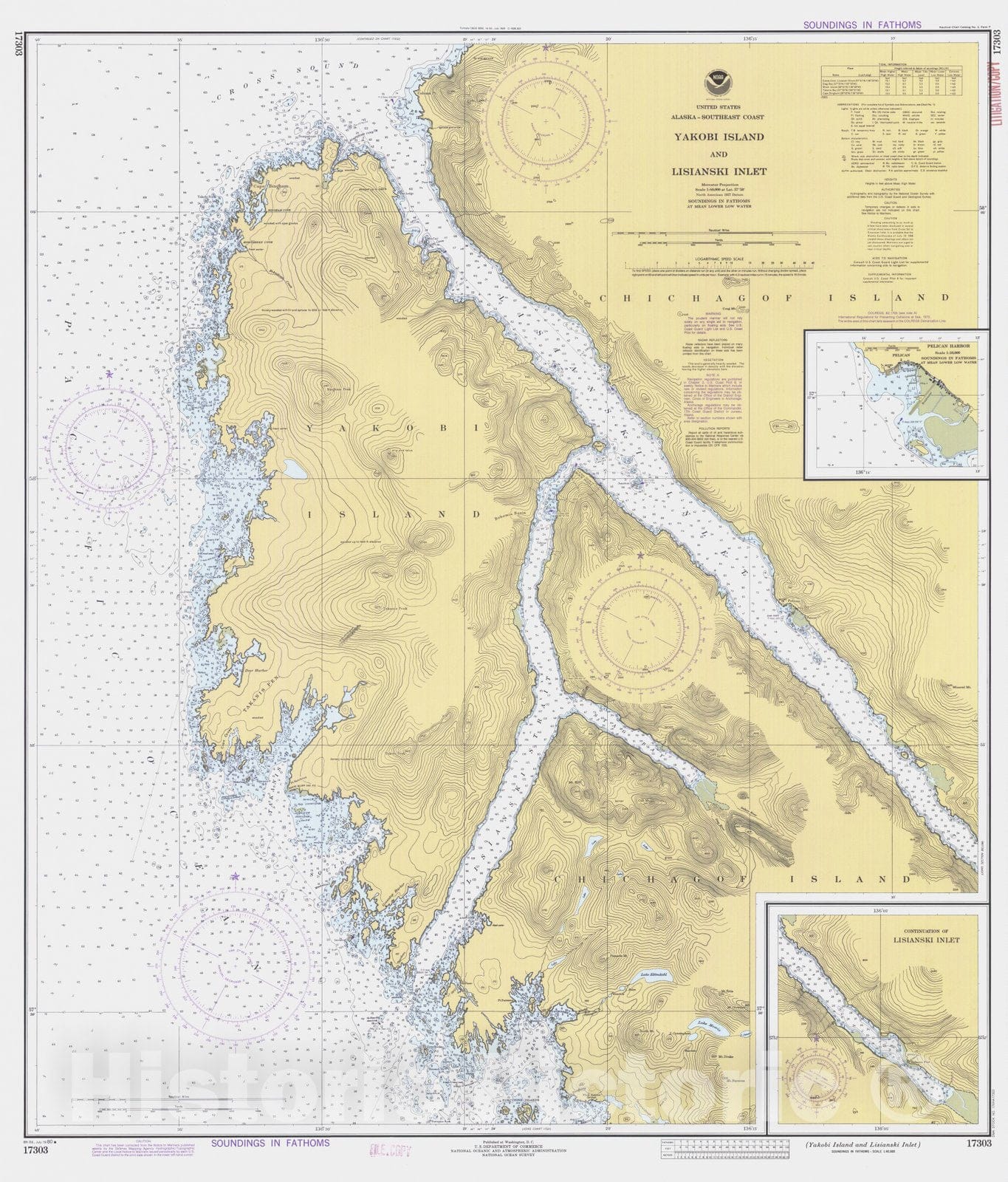 Historic Nautical Map - Yakobi Island And Lisianski Inlet, AK, 1980 NOAA Chart - Vintage Wall Art
