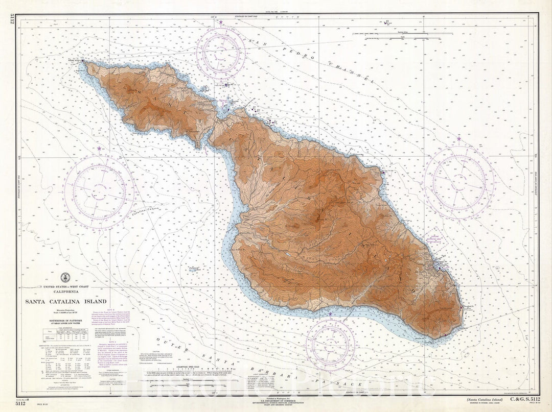 Historic Nautical Map - Santa Catalina Island, 1972 NOAA Chart - California (CA) - Vintage Wall Art