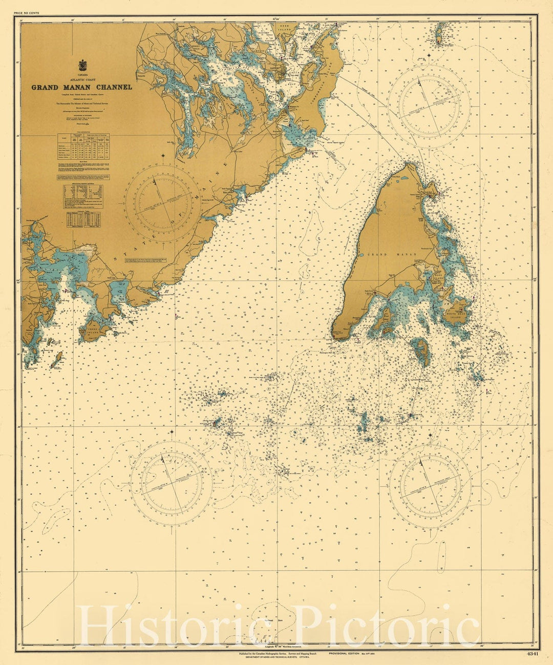 Historic Nautical Map - Grand Manan Channel, 1950 NOAA Chart - Maine (ME) - Vintage Wall Art