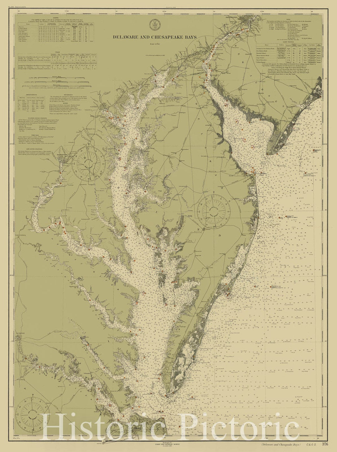 Historic Nautical Map - Delaware & Chesapeake Bay, 1912 NOAA Chart - Delaware, Virginia (DE, VA) - Vintage Wall Art
