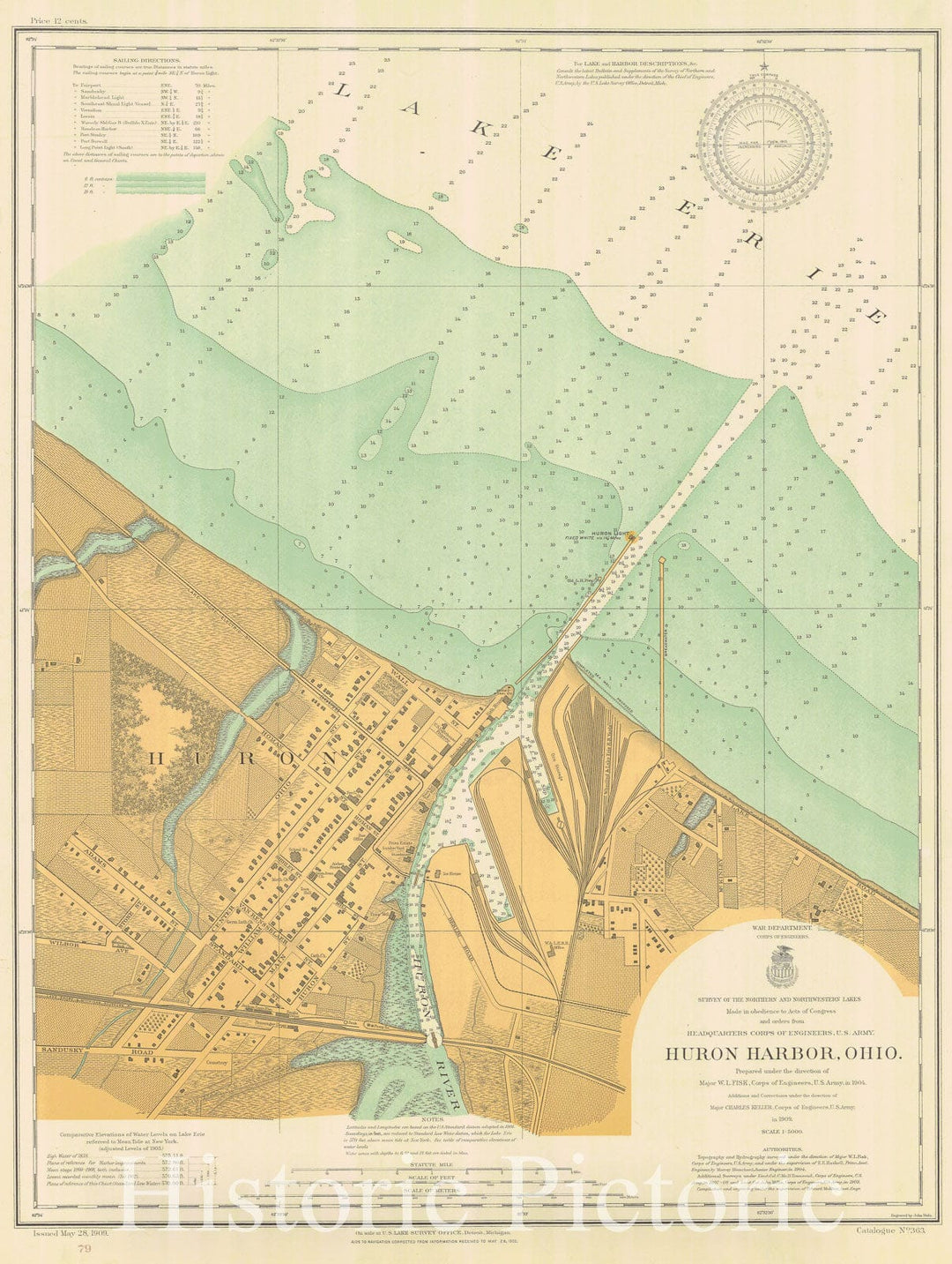 Historic Nautical Map - Huron Harbor, Ohio, 1909 NOAA Chart - Ohio (OH) - Vintage Wall Art