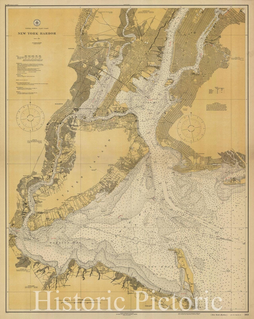Historic Nautical Map - New York Bay & Harbor, Ny - Upper Half, 1914 NOAA Chart - New York (NY) - Vintage Wall Art