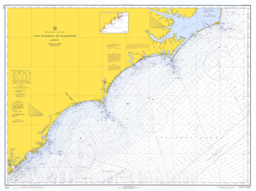 Historic Nautical Map - Cape Hatteras To Charleston, 1971 NOAA Chart - North Carolina, South Carolina (NC, SC) - Vintage Wall Art