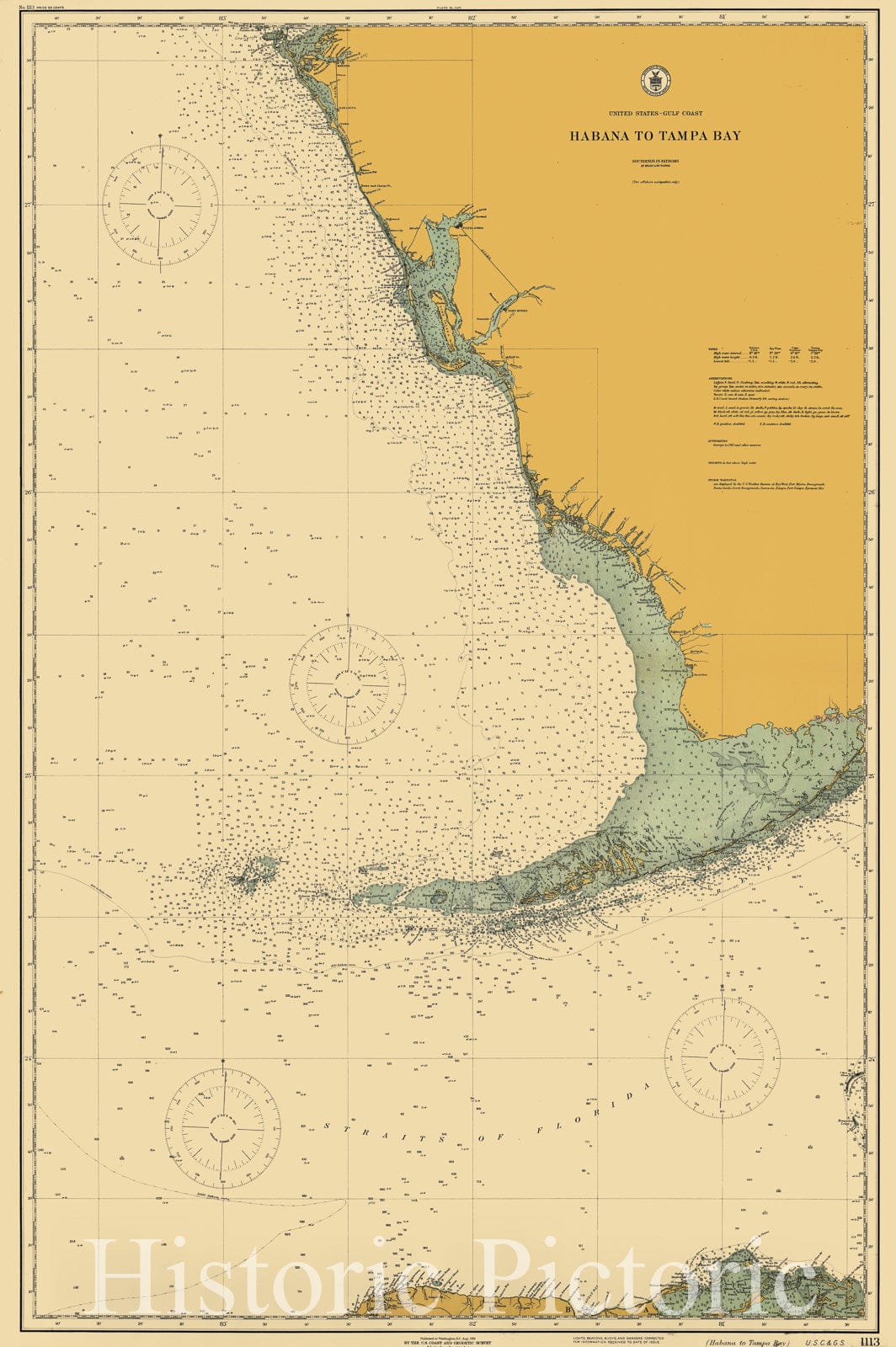Historic Nautical Map - Habana To Tampa Bay, 1916 NOAA Chart - Florida (FL) - Vintage Wall Art