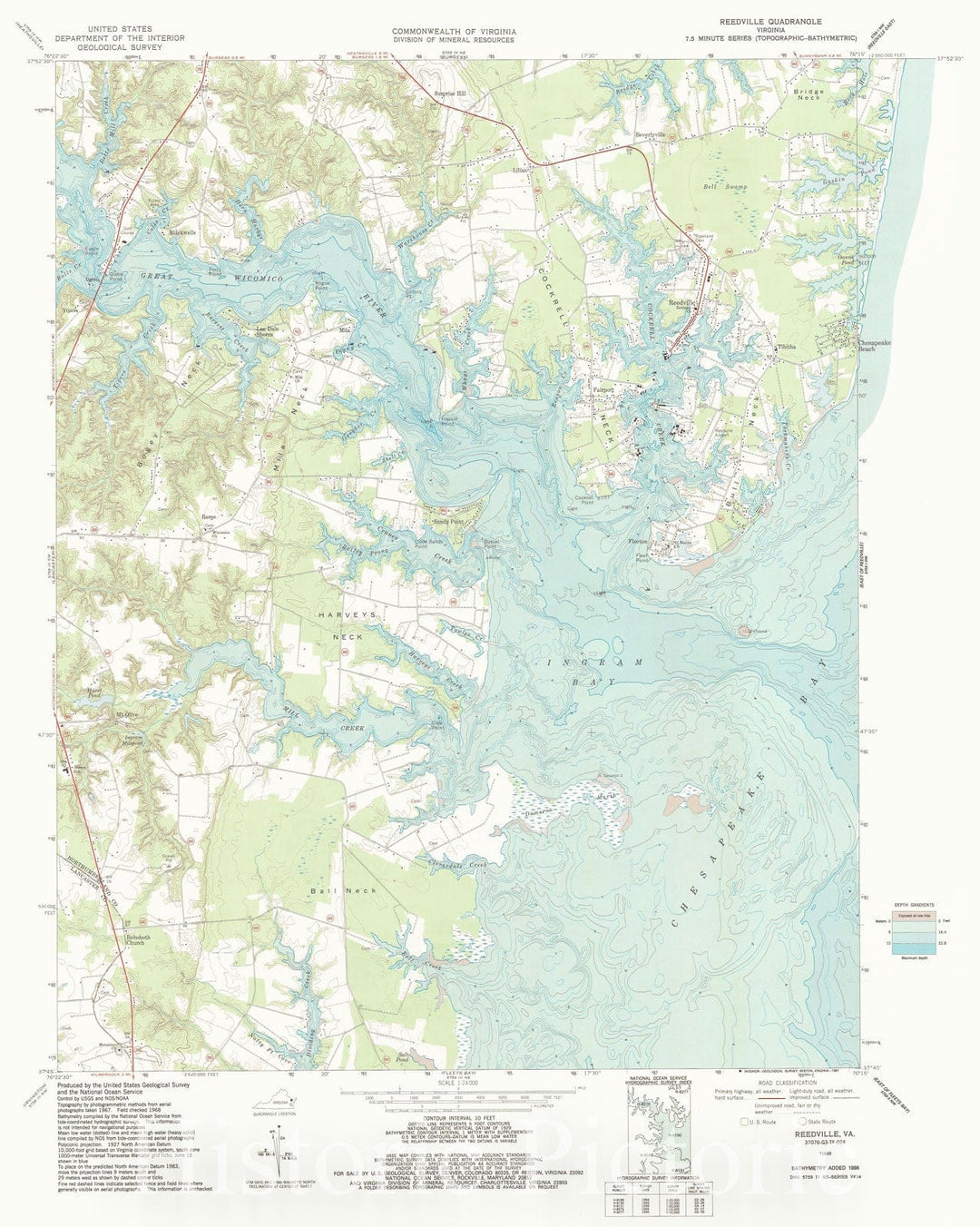 Historic Nautical Map - West Of Nandua Creek Va, VA, 1986 NOAA Topographic Bathymetric Historic Nautical Map - Vintage Wall Art