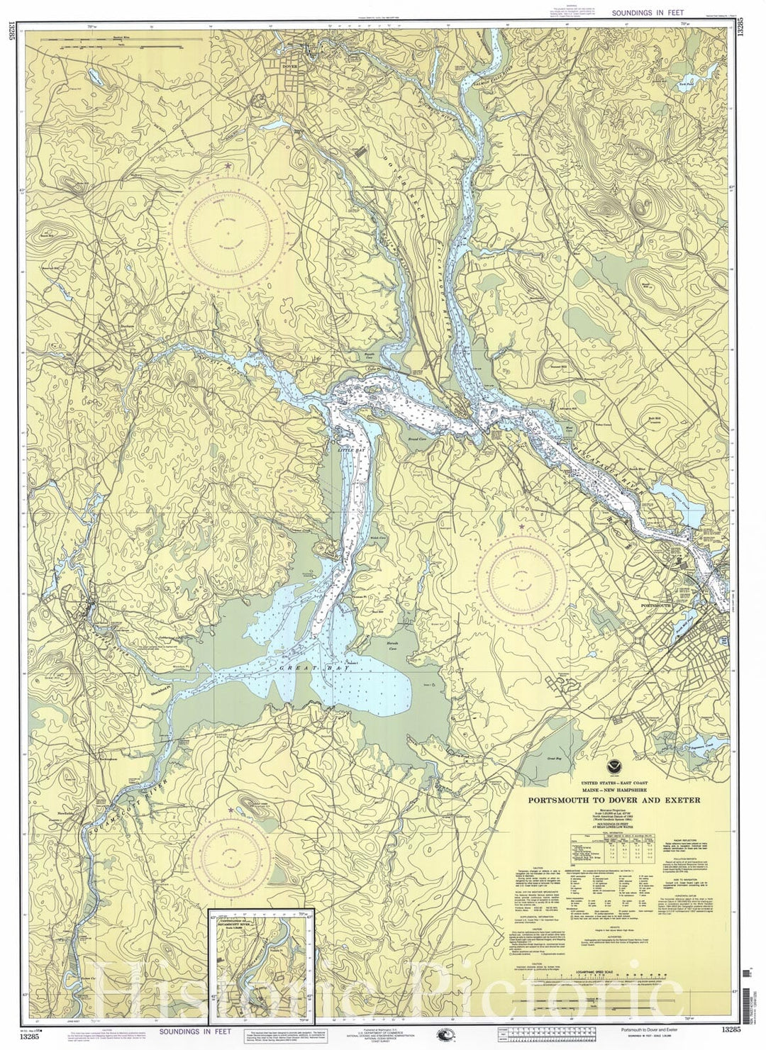 Historic Nautical Map - Portsmouth To Dover And Exeter, 1998 NOAA Chart - Maine, New Hampshire (ME, NH) - Vintage Wall Art