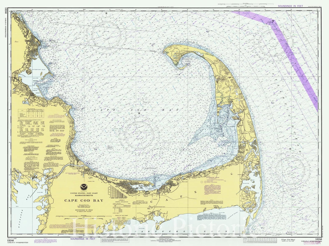 Historic Nautical Map - Cape Cod Bay, 1982 NOAA Chart - Massachusetts (MA) - Vintage Wall Art
