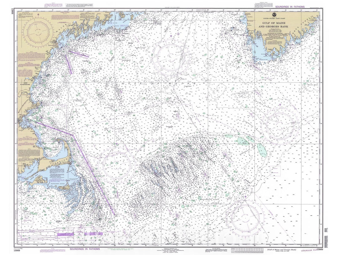 Historic Nautical Map - Gulf Of Maine And Georges Bank, 1994 NOAA Chart - Maine, New Hampshire, Massachusetts (ME, NH, MA) - Vintage Wall Art
