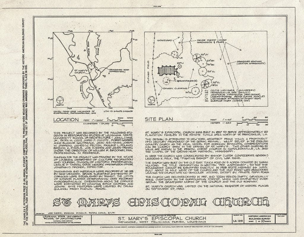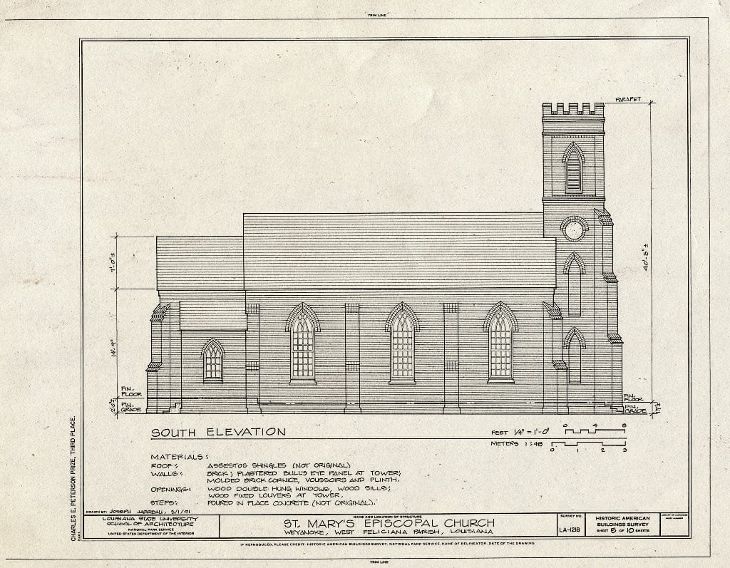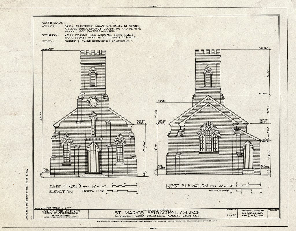 Blueprint HABS LA,63-WEY,1- (Sheet 1 of 10) - St. Mary's Episcopal Church, Near LA Highway 66, Weyanoke, West Feliciana Parish, LA