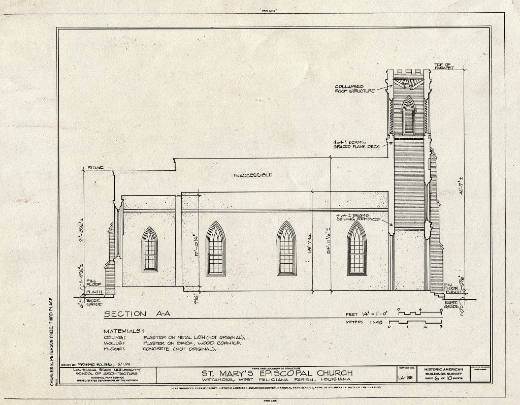 Blueprint HABS LA,63-WEY,1- (Sheet 6 of 10) - St. Mary's Episcopal Church, Near LA Highway 66, Weyanoke, West Feliciana Parish, LA