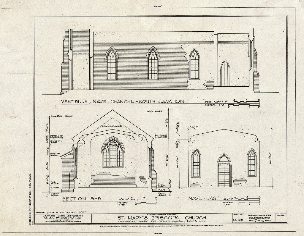 Blueprint HABS LA,63-WEY,1- (Sheet 7 of 10) - St. Mary's Episcopal Church, Near LA Highway 66, Weyanoke, West Feliciana Parish, LA