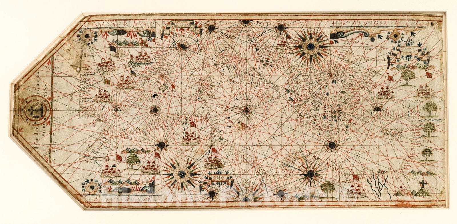 • .Historic 1678 Map - Chart of The Mediterranean, The Coast of Portugal, and The Northwest Coast of Africa