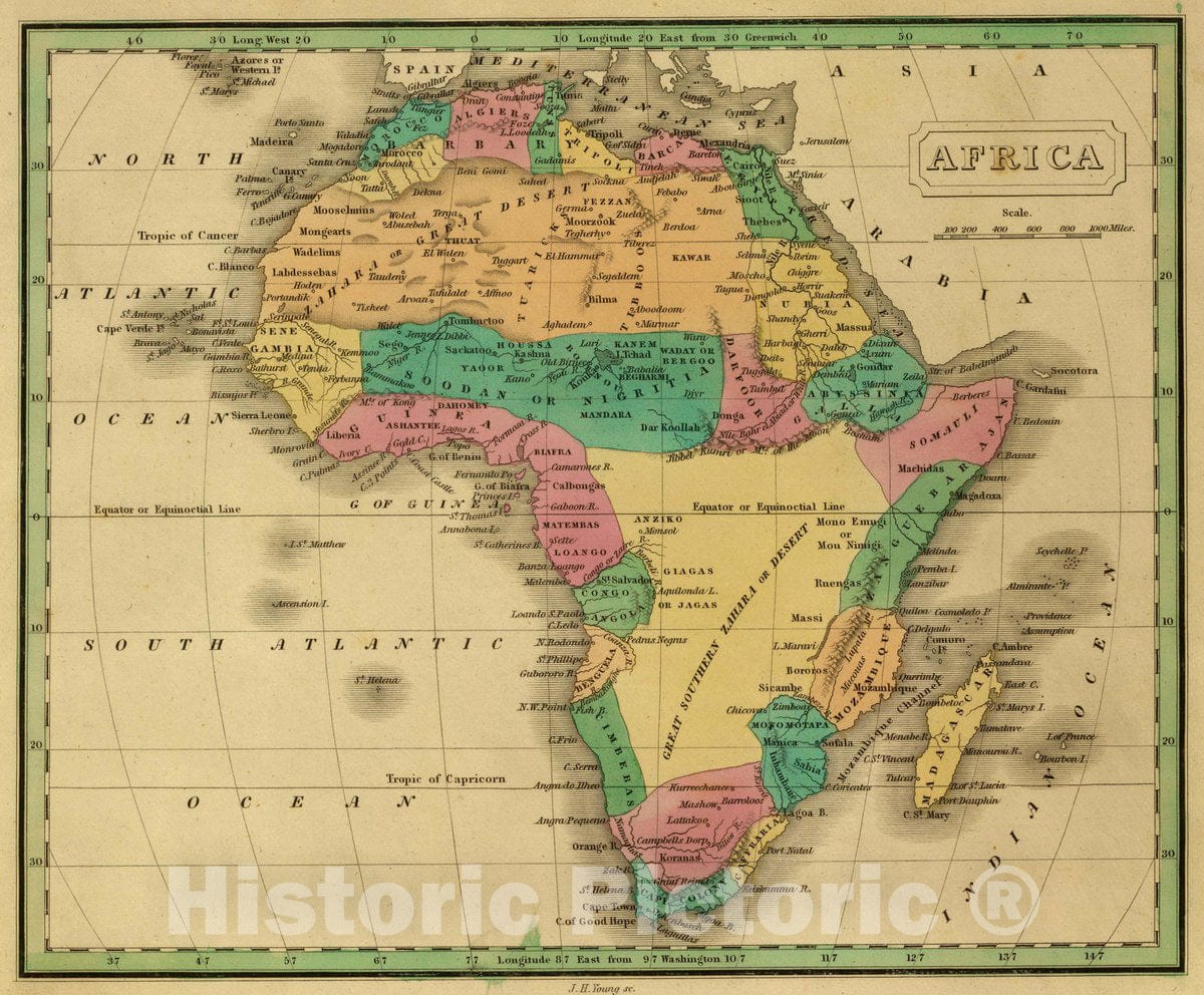 • .Historic Map : Africa. J.H. Young Sc. (Philadelphia: John Grigg, No. 9 North Fourth Street. 1830), 1830 Atlas - Vintage Wall Art