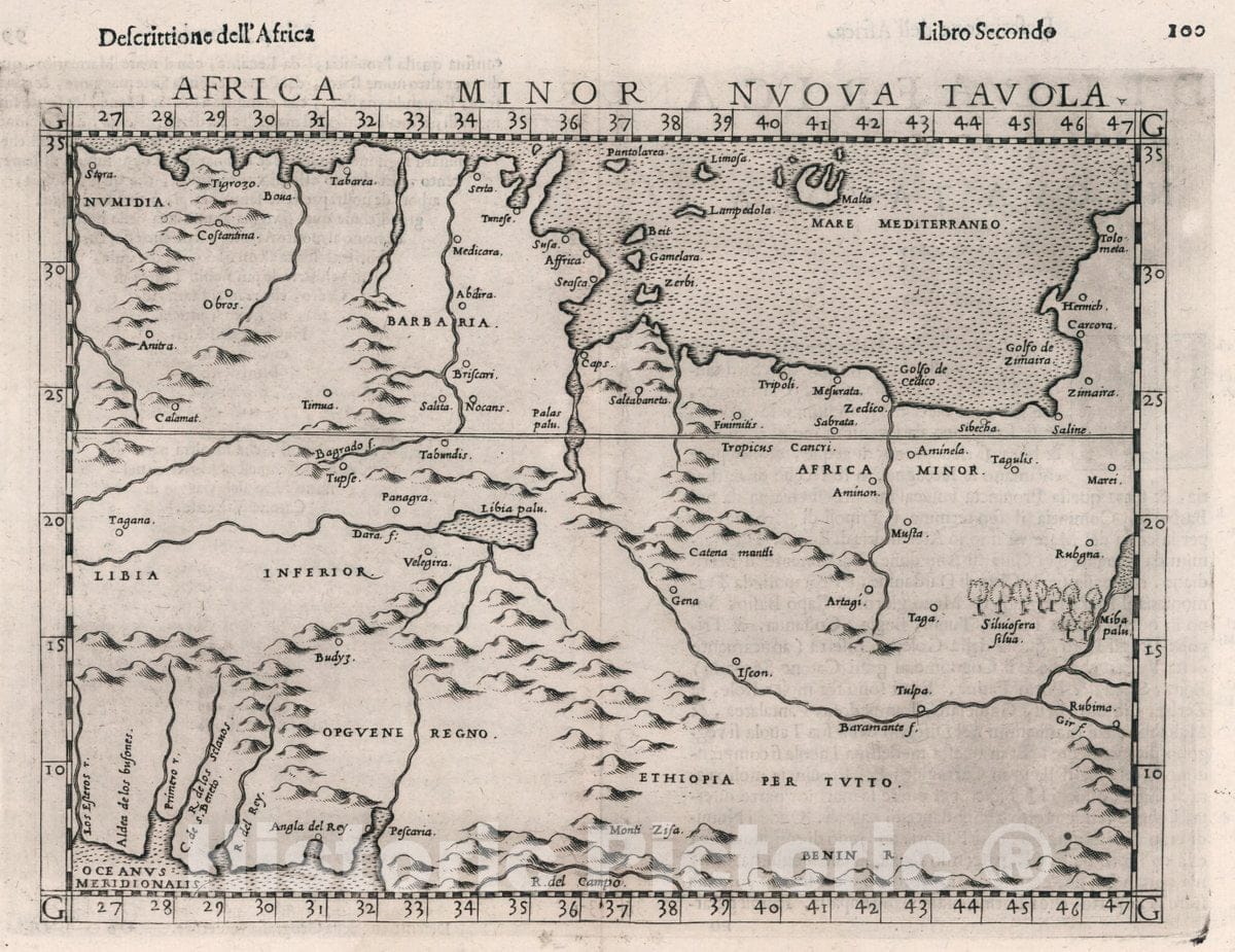 • .Historic Map : Africa, North Africa Minor Nvova tavola. Descrittione dell' Africa. Libro Secondo, 1599 Atlas , Vintage Wall Art