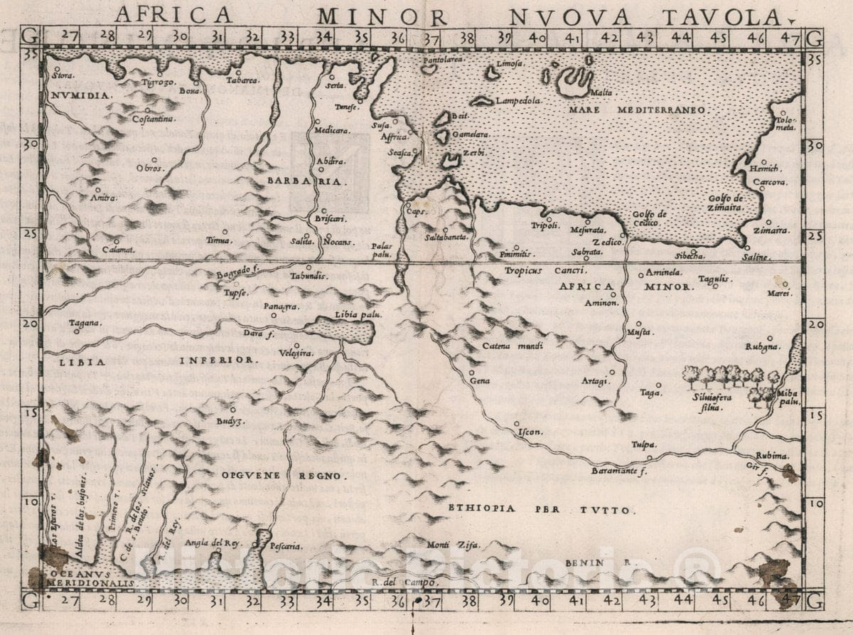 Historic Map : Africa, North Africa Minor Nvova tavola. Africa Minore, Decimanona tavola nvova, 1561 Atlas , Vintage Wall Art